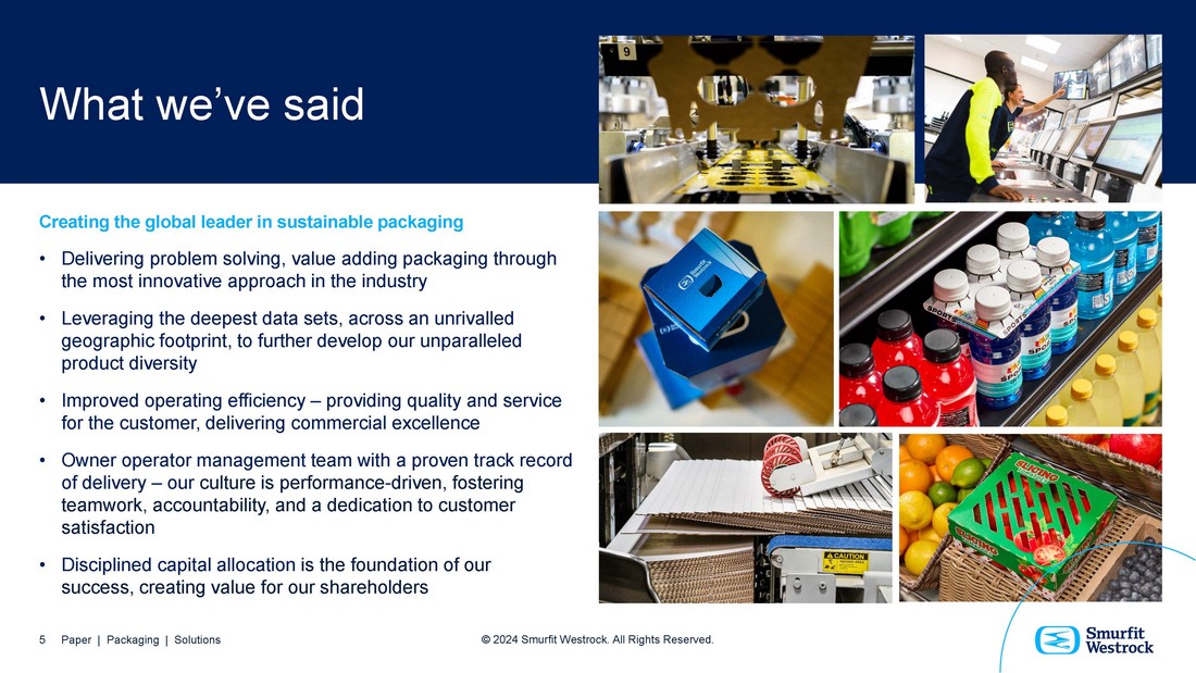 Introduction 4 Paper | Packaging | Solutions © 2024 Smurfit Westrock. All Rights Reserved.