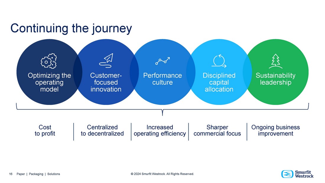 Disciplined capital allocation Optimizing the operating model Customer - focused innovation Performance culture Sustainability leadership Centralized to decentralized Increased operating efficiency Sharper commercial focus Cost to profit Continuing the journey Ongoing business improvement 16 Paper | Packaging | Solutions © 2024 Smurfit Westrock. All Rights Reserved.