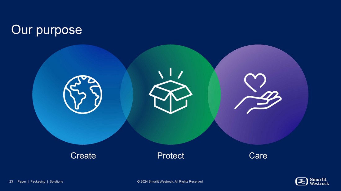 Our purpose 23 Paper | Packaging | Solutions © 2024 Smurfit Westrock. All Rights Reserved. Create Protect Care