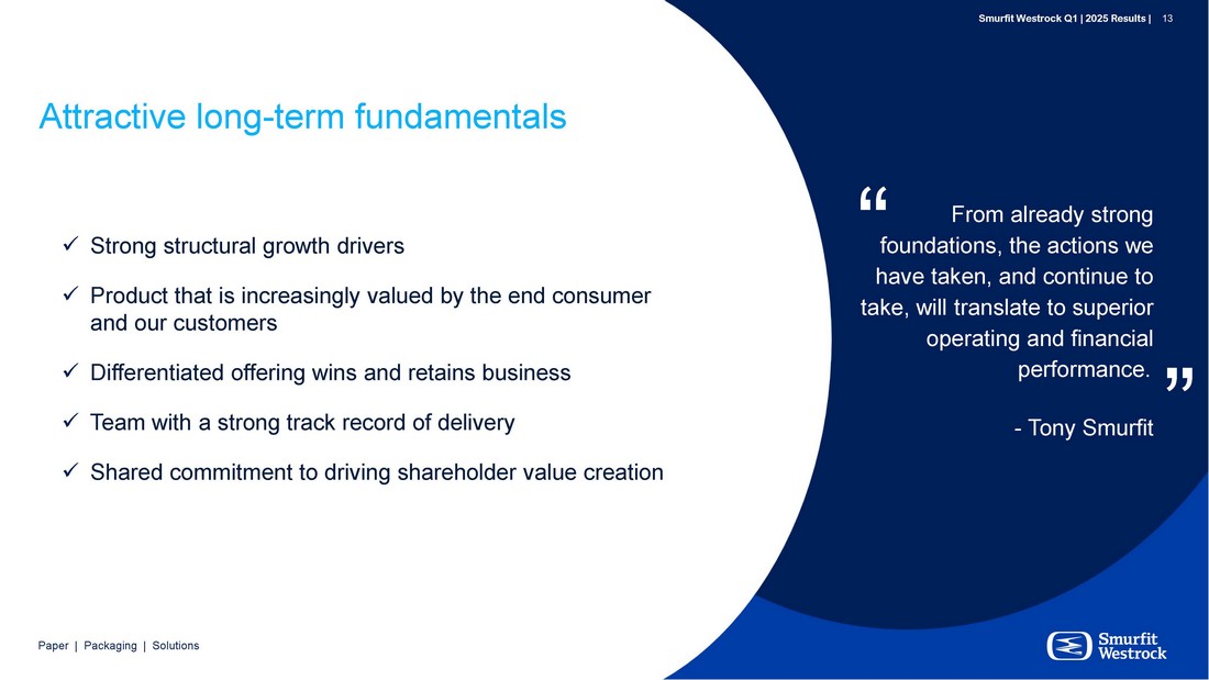 Smurfit Westrock Q1 | 2025 Results | 12 Paper | Packaging | Solutions Conclusion