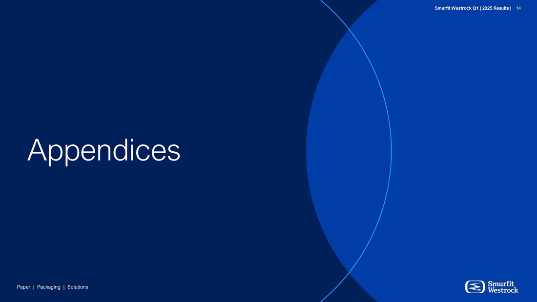 Smurfit Westrock Q1 | 2025 Results | 14 Paper | Packaging | Solutions Appendices
