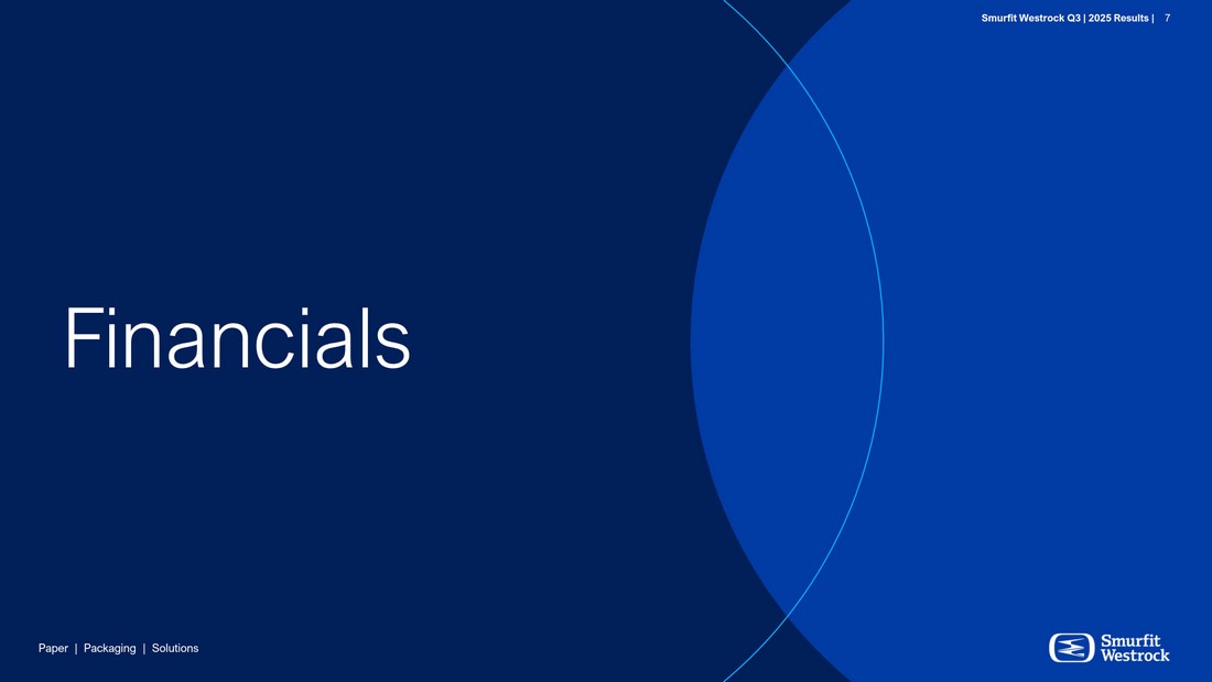 P a per | P a c k a g i n g | So l u t i ons S m u r f i t We s t r o c k Q 3 | 202 5 R e s ul t s | 7 F inanc i als