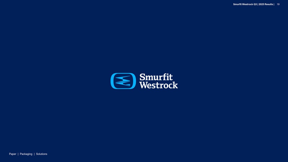 P a per | P a c k a g i n g | So l u t i ons S m u r f i t We s t r o c k Q 3 | 202 5 R e s ul t s | 19