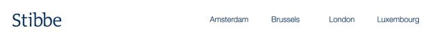 Stibbe London B.V. is registered with the Dutch Chamber of Commerce under number 34206454. Any services performed are carried out under an agreement for services (‘overeenkomst van opdracht’) with Stibbe London B.V., which is governed exclusively by Dutch law. The general conditions of Stibbe London B.V., which include a limitation of liability, apply and are available on www.stibbe.com/generalconditions or upon request.