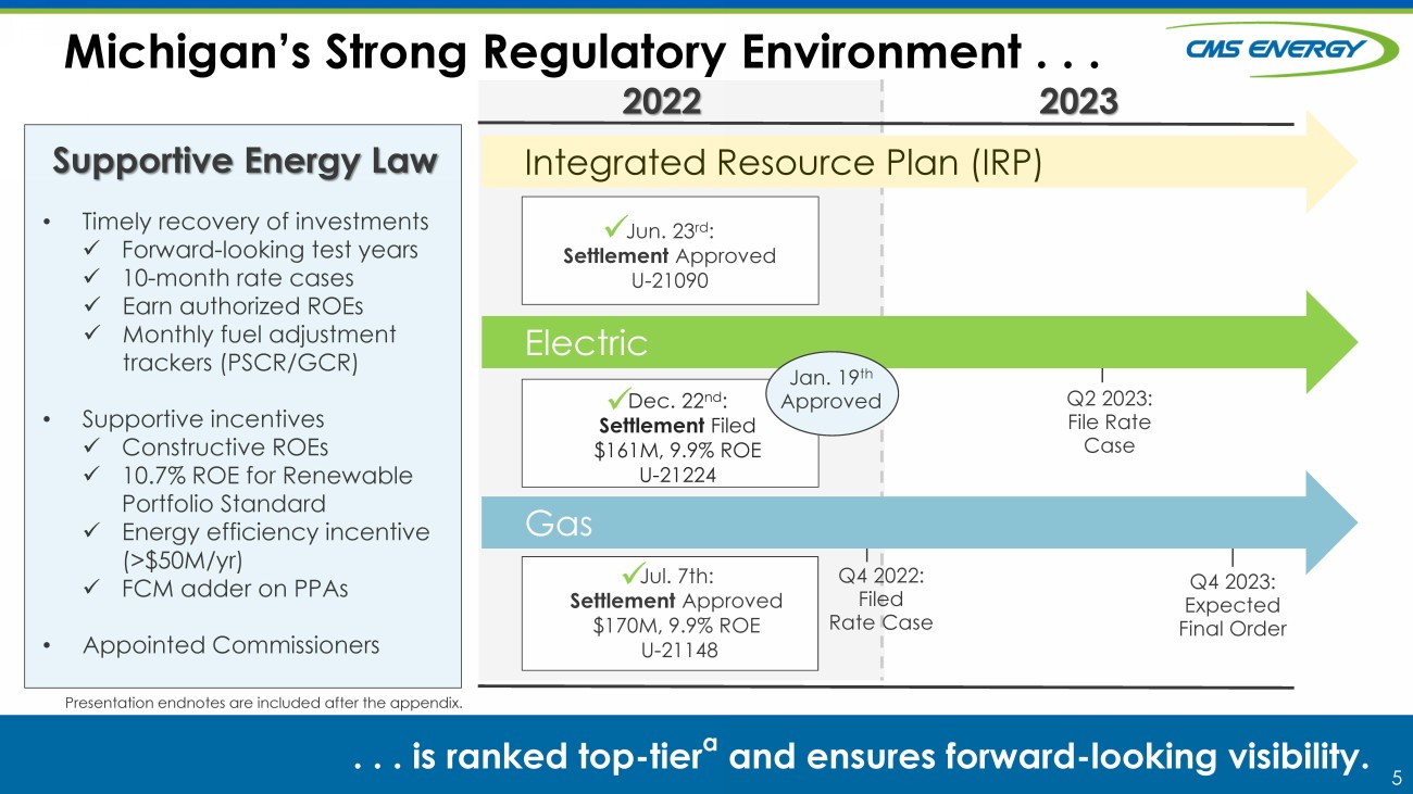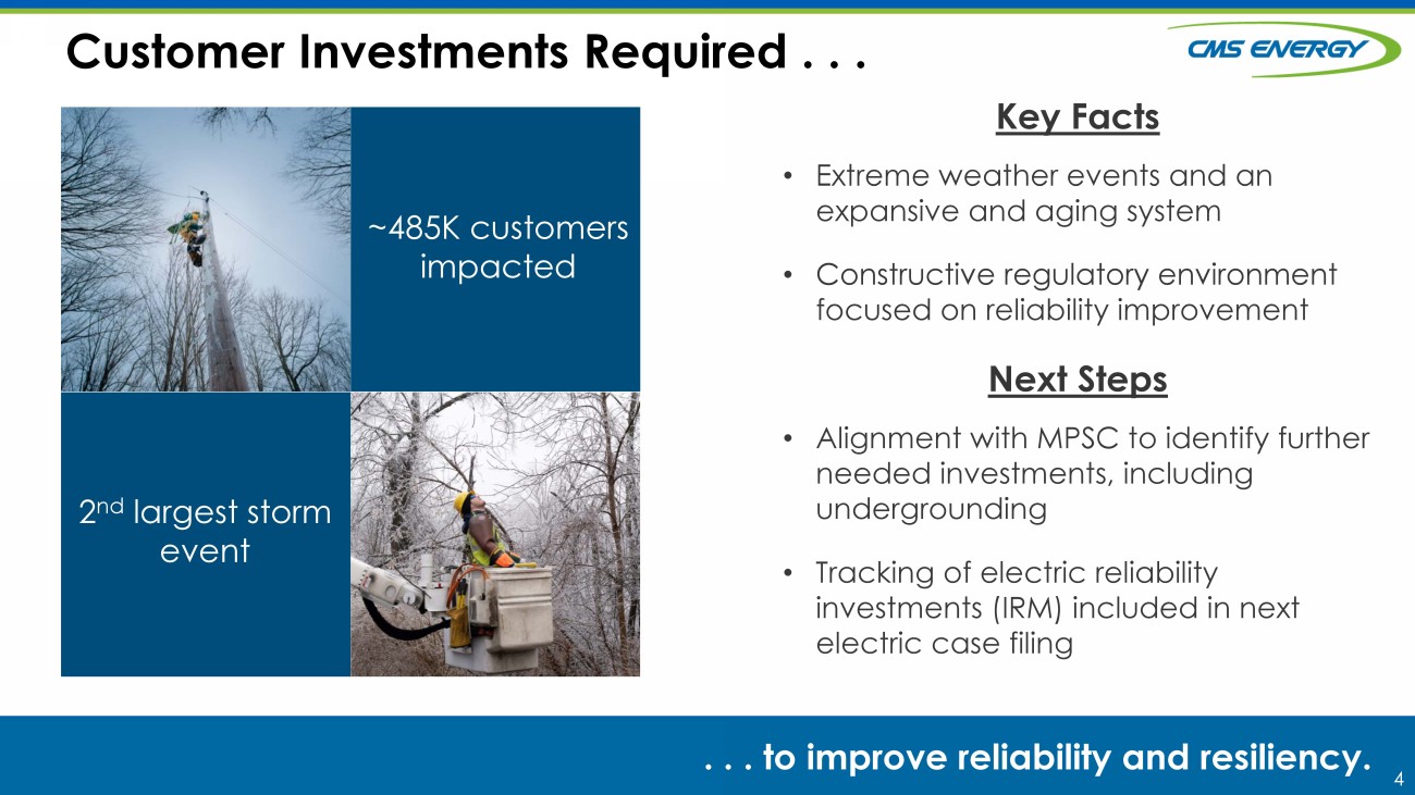 4 Customer Investments Required . . . . . . t o improve reliability and resiliency . • Extreme weather events and an expansive and aging system • Constructive regulatory environment focused on reliability improvement 2 nd largest storm event Key Facts • Alignment with MPSC to identify further needed investments, including undergrounding • Tracking of electric reliability investments (IRM) included in next electric case filing Next Steps ~485K customers impacted