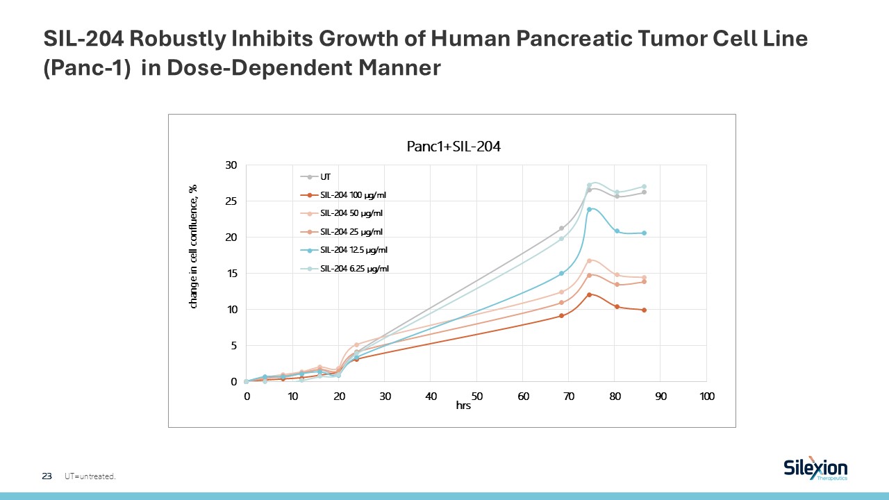 SIL-204 Robustly Inhibits Growth of Human Pancreatic Tumor Cell Line (Panc-1) in Dose-Dependent Manner  23   UT=untreated.