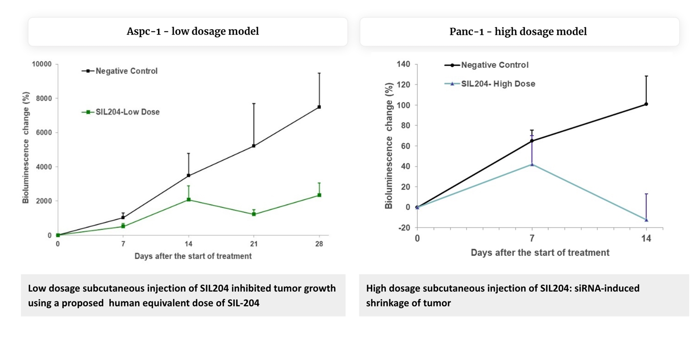 These findings represent a significant advancement over previously reported data by providing further validation of SIL204's efficacy in the more clinically relevant orthotopic setting, where human pancreatic tumor cells are implanted directly into the pancreas to better mimic human disease progression, including, for the first time, in metastasis patterns.