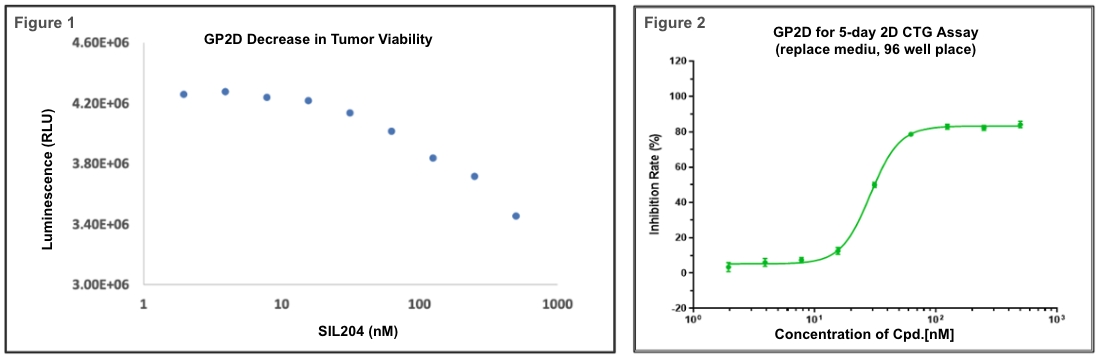 Notably, as can be seen in the right hand graph below (figure 2), the Company observed an inhibition rate of approximately 90% in the presence of SIL204 in GP2D colorectal cancer cells.