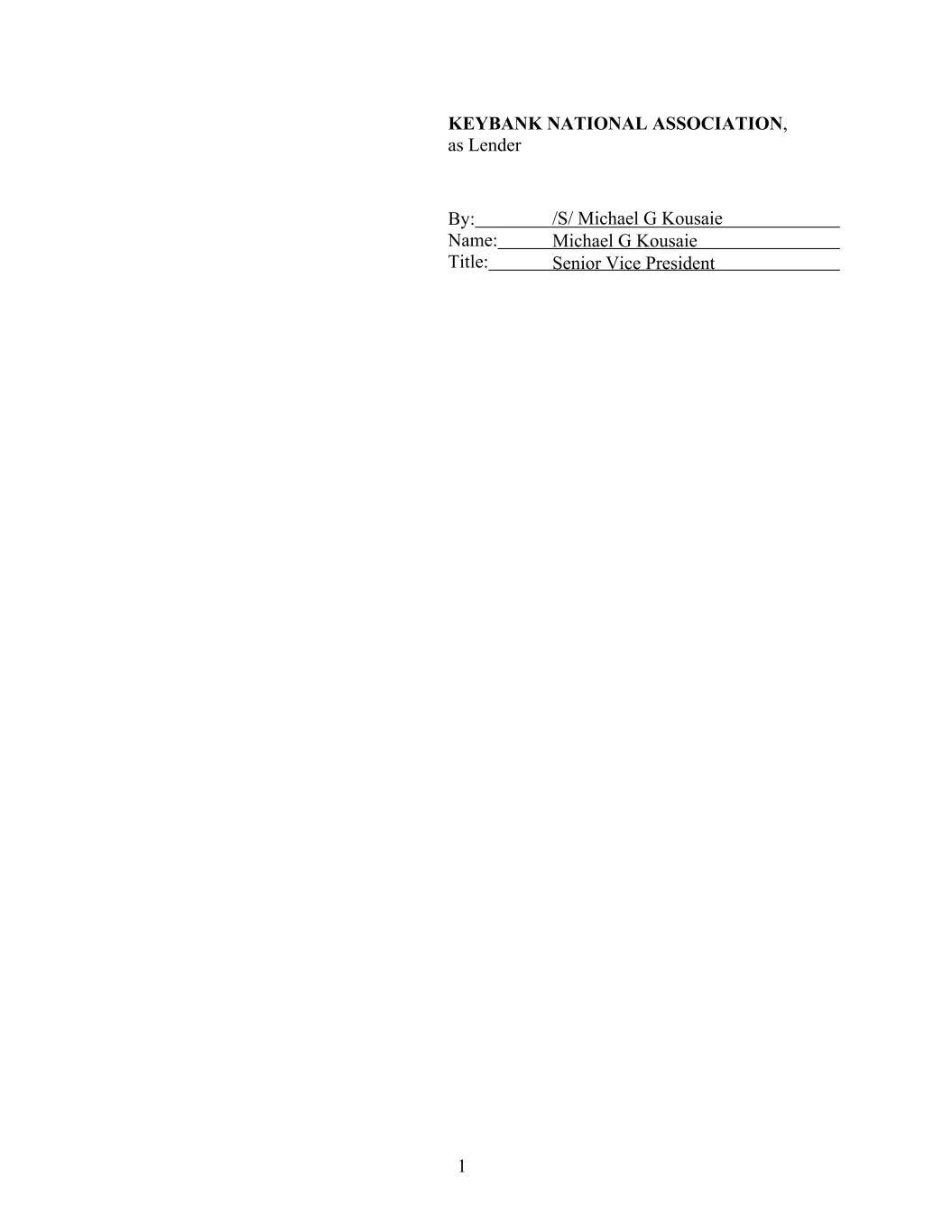 1 KEYBANK NATIONAL ASSOCIATION, as Lender By: Name: Title: /S/ Michael G Kousaie Michael G Kousaie Senior Vice President
