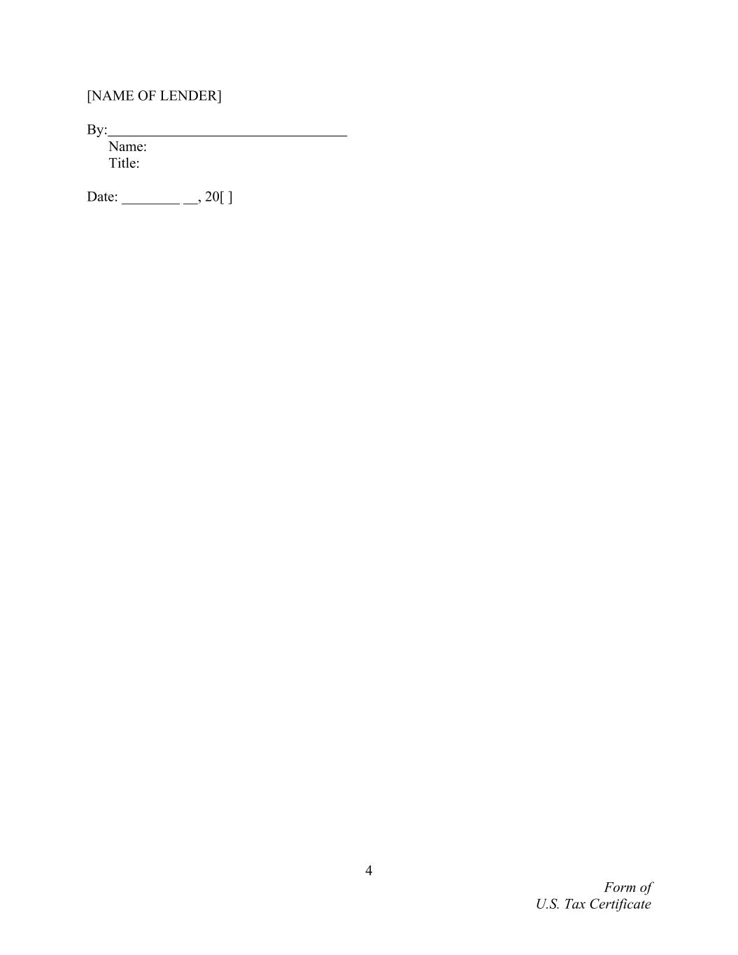 4 Form of U.S. Tax Certificate [NAME OF LENDER] By: Name: Title: Date: ________ __, 20[ ]