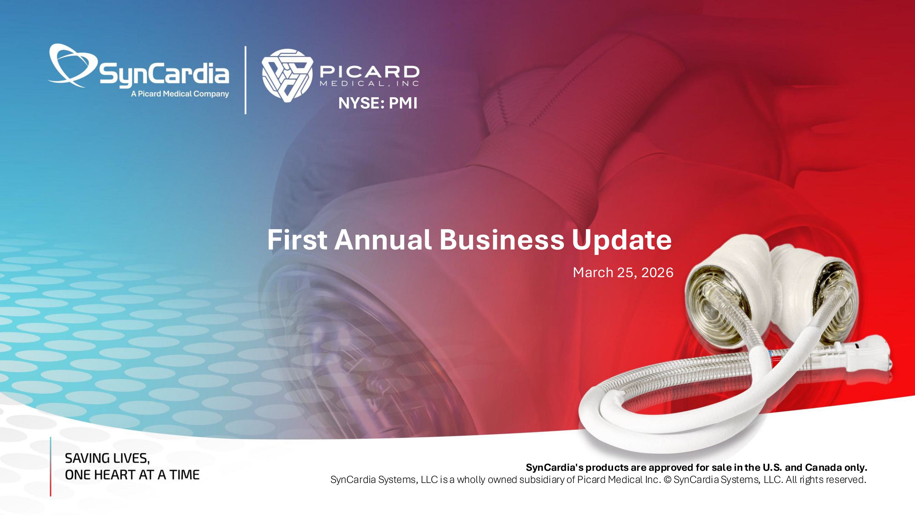 SynCardia's products are approved for sale in the U.S. and Canada only. SynCardia Systems, LLC is a wholly owned subsidiary of Picard Medical Inc. © SynCardia Systems, LLC. All rights reserved. NYSE: PMI First Annual Business Update March 25, 2026