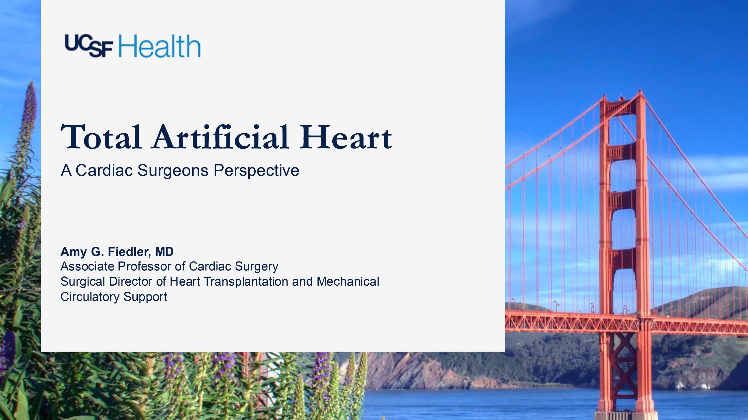 Experience with the SynCardia TAH Amy Fiedler, MD Associate Professor of Surgery, Surgical Director of Heart Transplantation and Mechanical Circulatory Support, UCSF