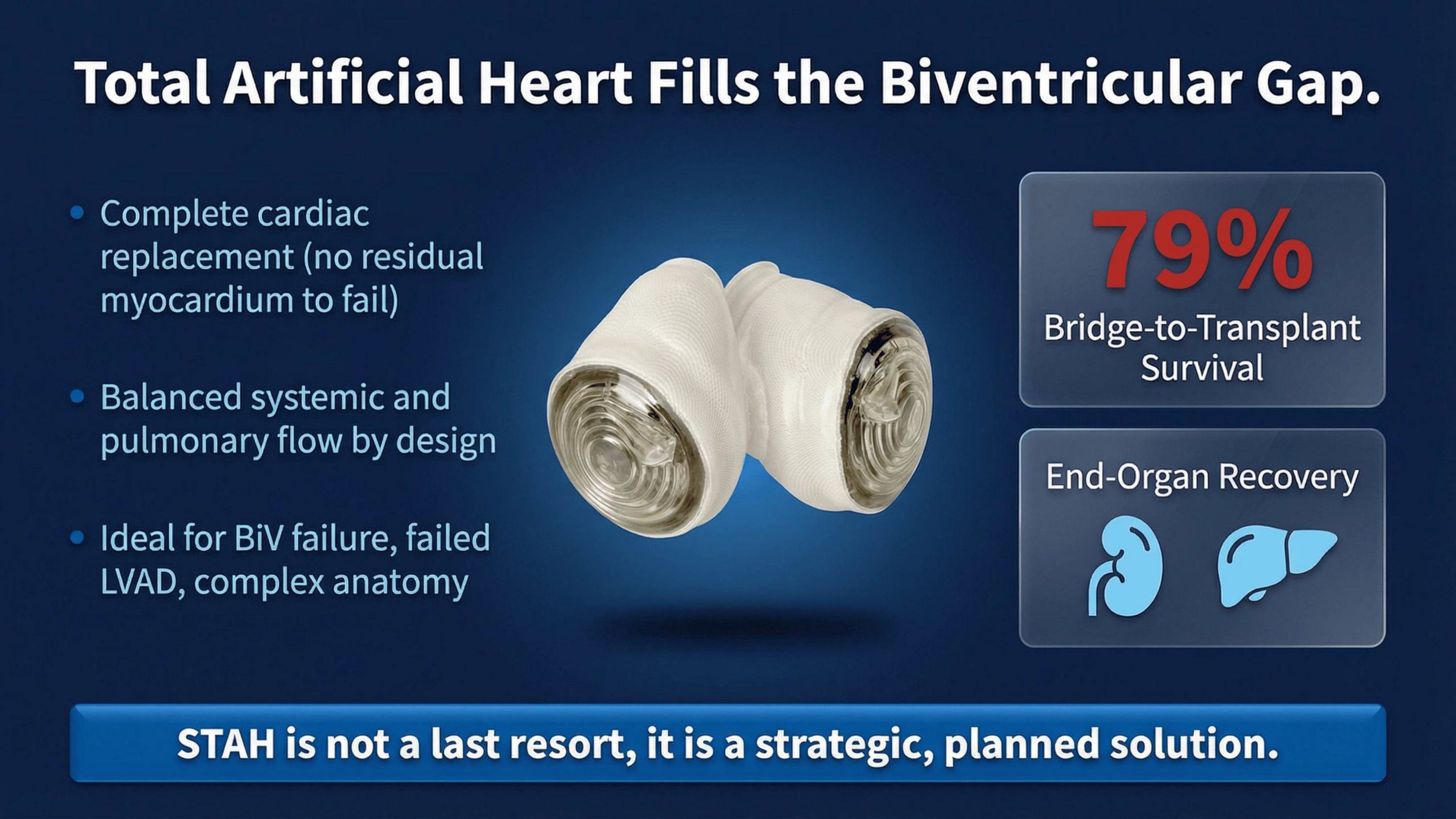 Drug Administration (FDA) and Health Canada approved total artificial heart. The SynCardia Total Artificial Heart is the most widely used and extensively studied artific ial heart in the world. The SynCardia Total Artificial Heart (STAH) The STAH has been successfully implanted in over 2,000 patients suffering from advanced stage heart failure. The implant is a vai lable in two sizes to accommodate patients’ diverse physiologies. The STAH is approved for sale in the US and in Canada where it is indicated for use in cardiac transplant - eligible patients at risk of