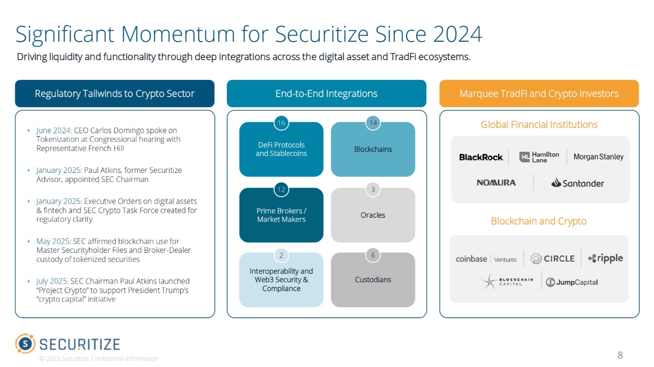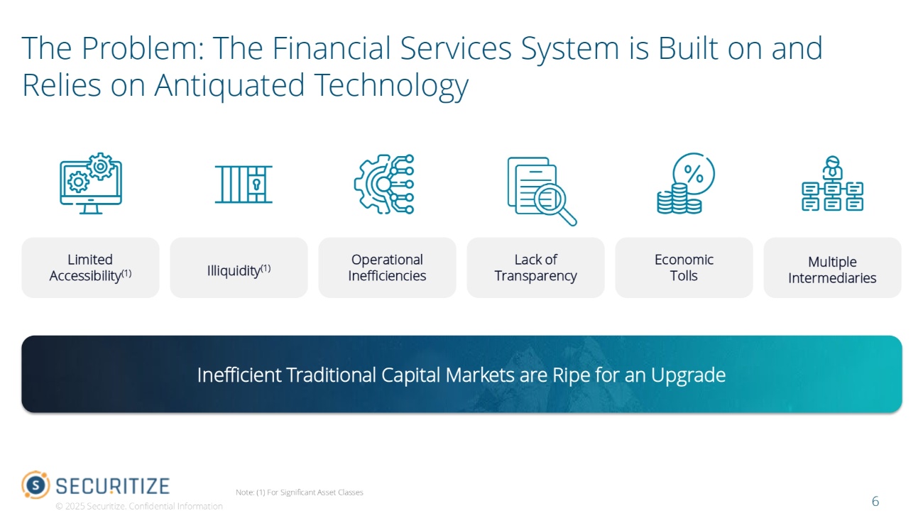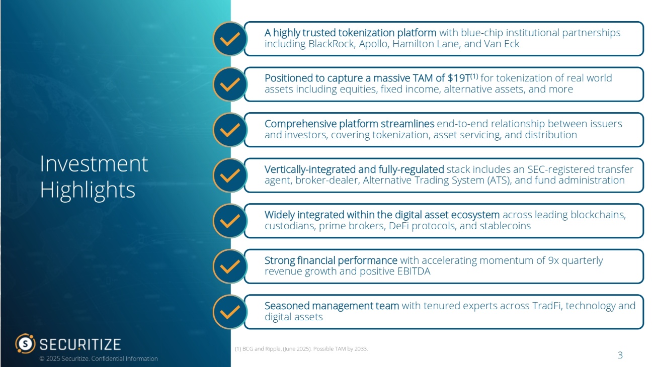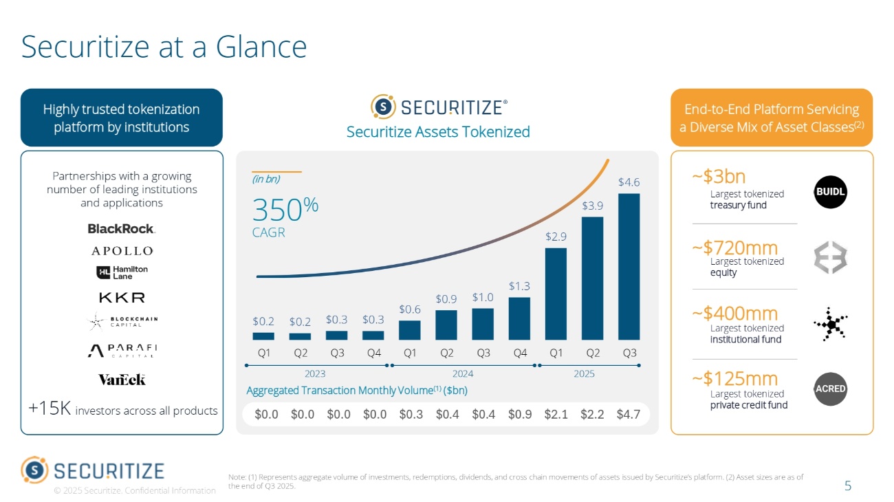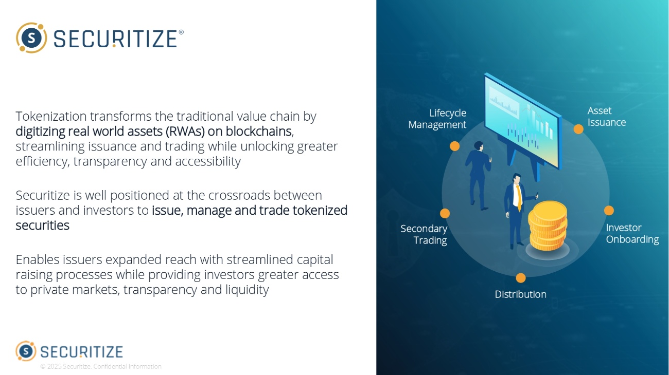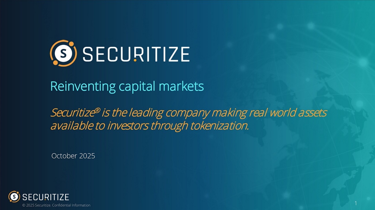 Reinventing capital markets Securitize ® is the leading company making real world assets available to investors through tokenization. October 2025 © 2025 Securitize. Confidential Information 1 © 2025 Securitize. Confidential Information