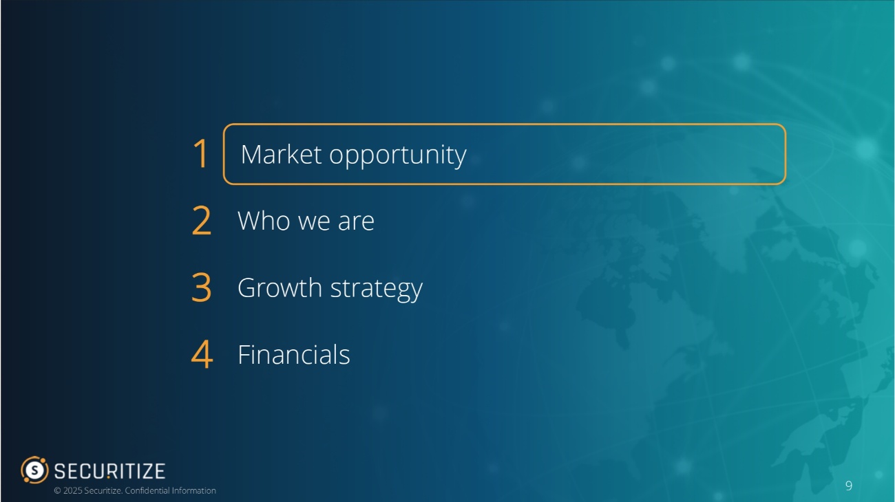 1 Market opportunity © 2025 Securitize. Confidential Information 9 © 2025 Securitize. Confidential Information Who we are Growth strategy 2 3 4 Financials