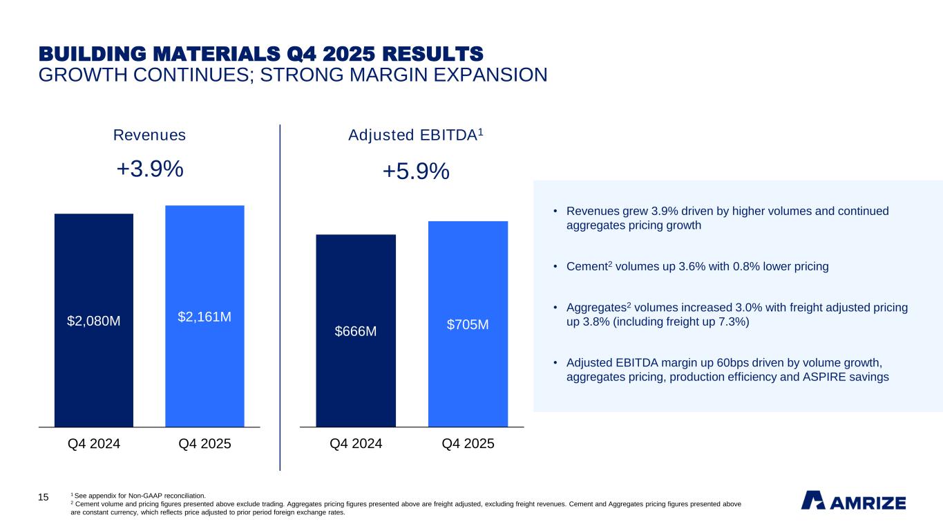 14 Logistics center, Toronto, ON Amrize inside Q4 2025 AND FULL YEAR 2025 RESULTS Ian Johnston, CFO