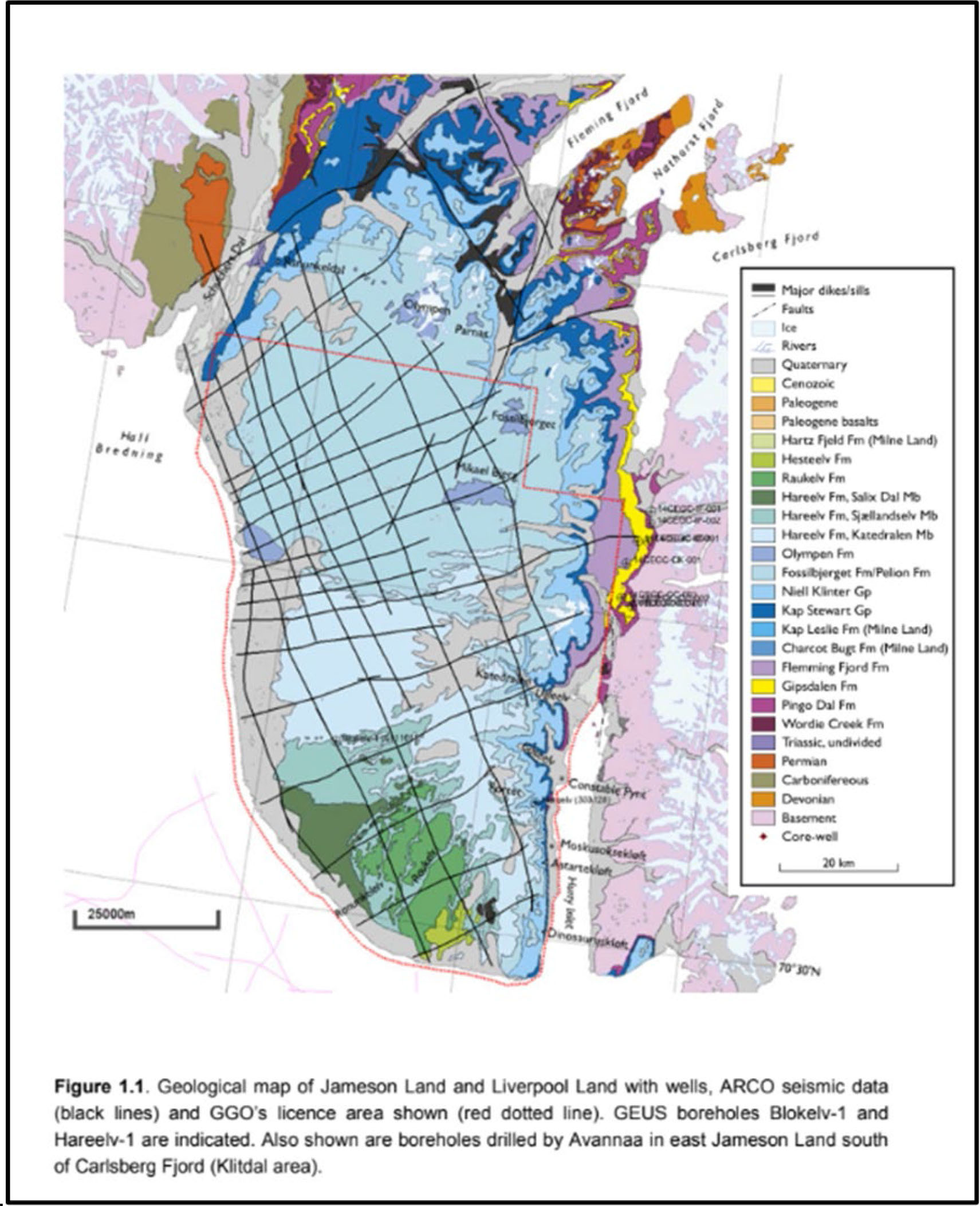 Figure 2: Geologic Map of Jameson Land Basin, Greenland Showing 2D Seismic Database (From Company)   15