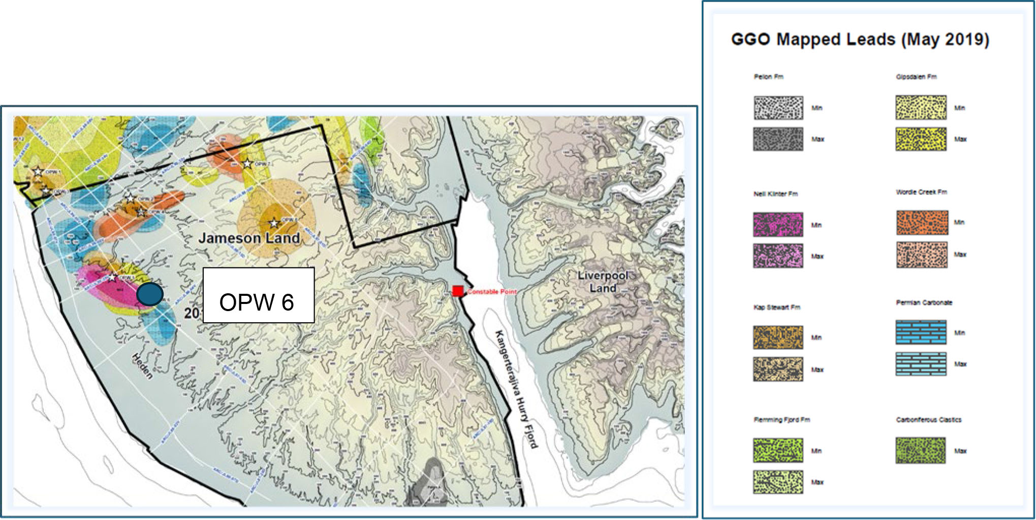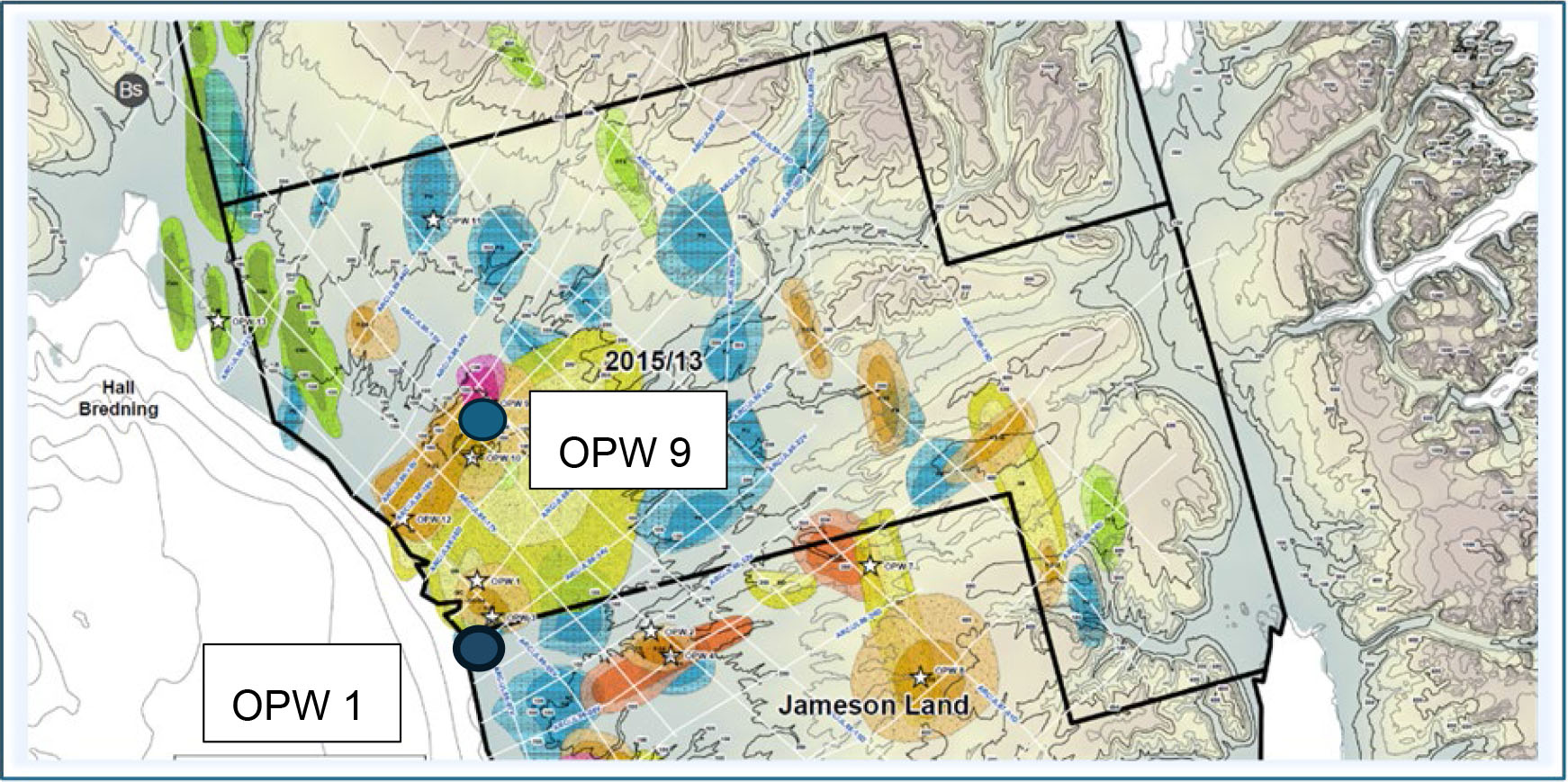 The second location, OPW6, advances the program by targeting new horizons; the NK2 (Kap Stewart), G2 (Gipsdalen), and PF (Wegener Halvo).