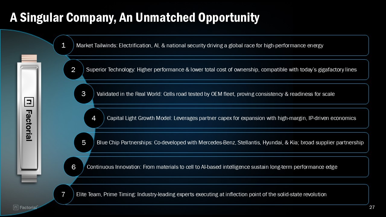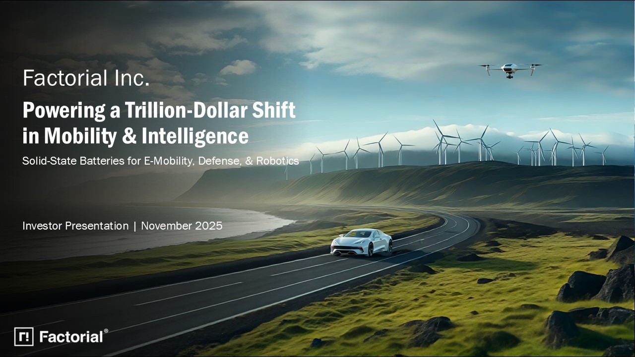Powering a Trillion - Dollar Shift in Mobility & Intelligence Factorial Inc. Solid - State Batteries for E - Mobility, Defense, & Robotics Investor Presentation | November 2025