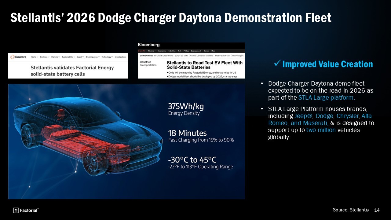 14 • Dodge Charger Daytona demo fleet expected to be on the road in 2026 as part of the STLA Large platform. • STLA Large Platform houses brands, including Jeep® , Dodge , Chrysler , Alfa Romeo, and Maserati, & is designed to support up to two million vehicles globally. Stellantis’ 2026 Dodge Charger Daytona Demonstration Fleet Source: Stellantis