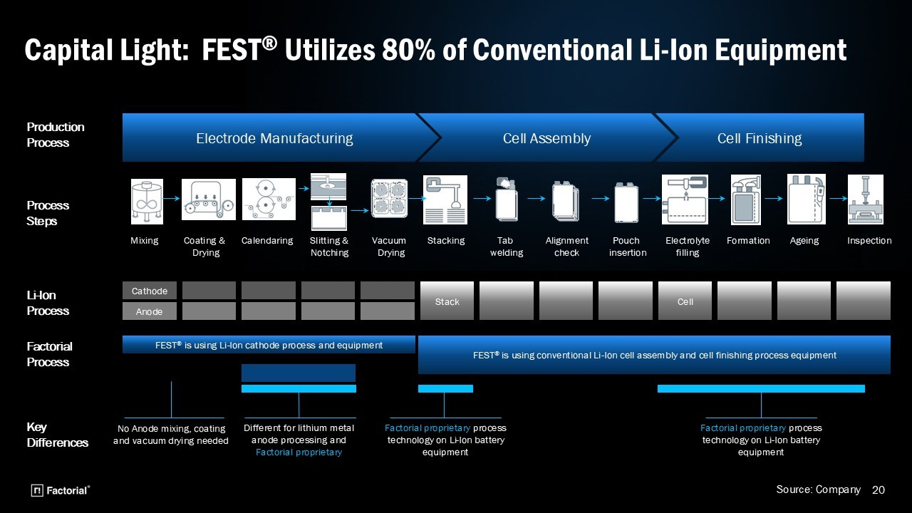 19 Capital Light: Near - Term Commercialization Path IP: Cell Design Product: Electrolyte Service: Process Engineering Commercial Relationship /Customer Demand Factorial Energy Industrialization Partner Licensing, Product, Service Revenue OEM Customers Technology Alignment Commercial Relationship Factorial Cells