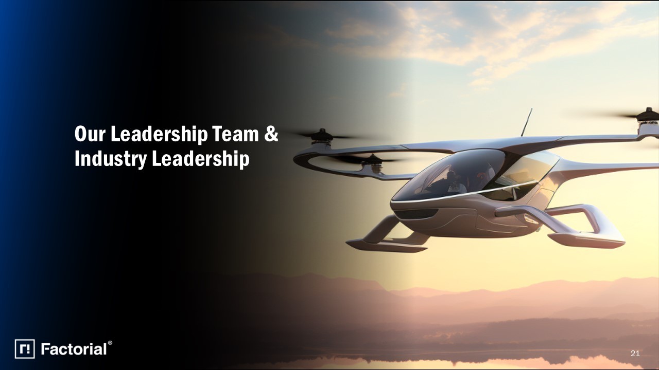 20 Capital Light: FEST ® Utilizes 80% of Conventional Li - Ion Equipment Electrode Manufacturing Cell Assembly Production Process Process Steps Li - Ion Process Factorial Process Cell Finishing Cell Stack Cathode Anode FEST ® is using conventional Li - Ion cell assembly and cell finishing process equipment FEST ® is using Li - Ion cathode process and equipment Key Differences Mixing Coating & Drying Calendaring Slitting & Notching Vacuum Drying Stacking Tab welding Alignment check Pouch insertion Electrolyte filling Formation Ageing Inspection Different for lithium metal anode processing and Factorial proprietary Factorial proprietary process technology on Li - Ion battery equipment Factorial proprietary process technology on Li - Ion battery equipment No Anode mixing , coating and vacuum drying needed Source: Company