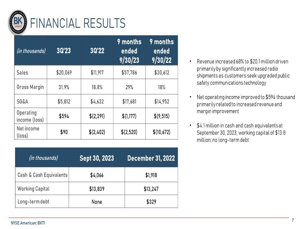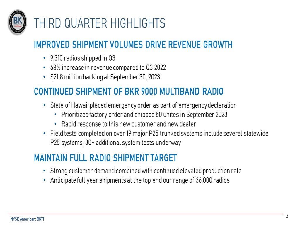 EX-99.1 3 bkti_ex992.htm THIRD QUARTER CONFERENCE CALL bkti_ex992.htm