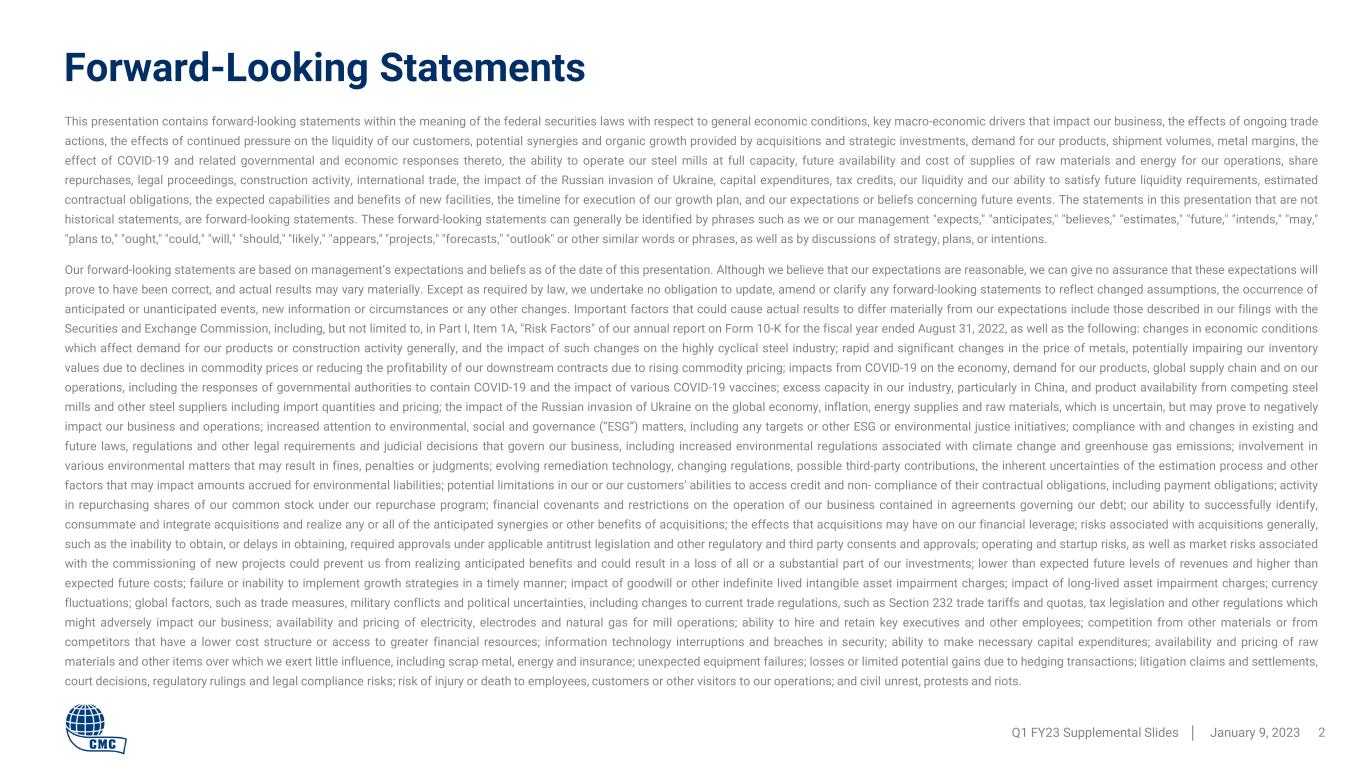 COMMERCIAL METALS COMPANY Q1 FY 2023 Supplemental Slides