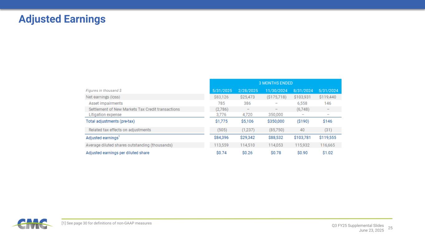 25 [1] See page 30 for definitions of non-GAAP measures Q3 FY25 Supplemental Slides June 23, 2025 Adjusted Earnings