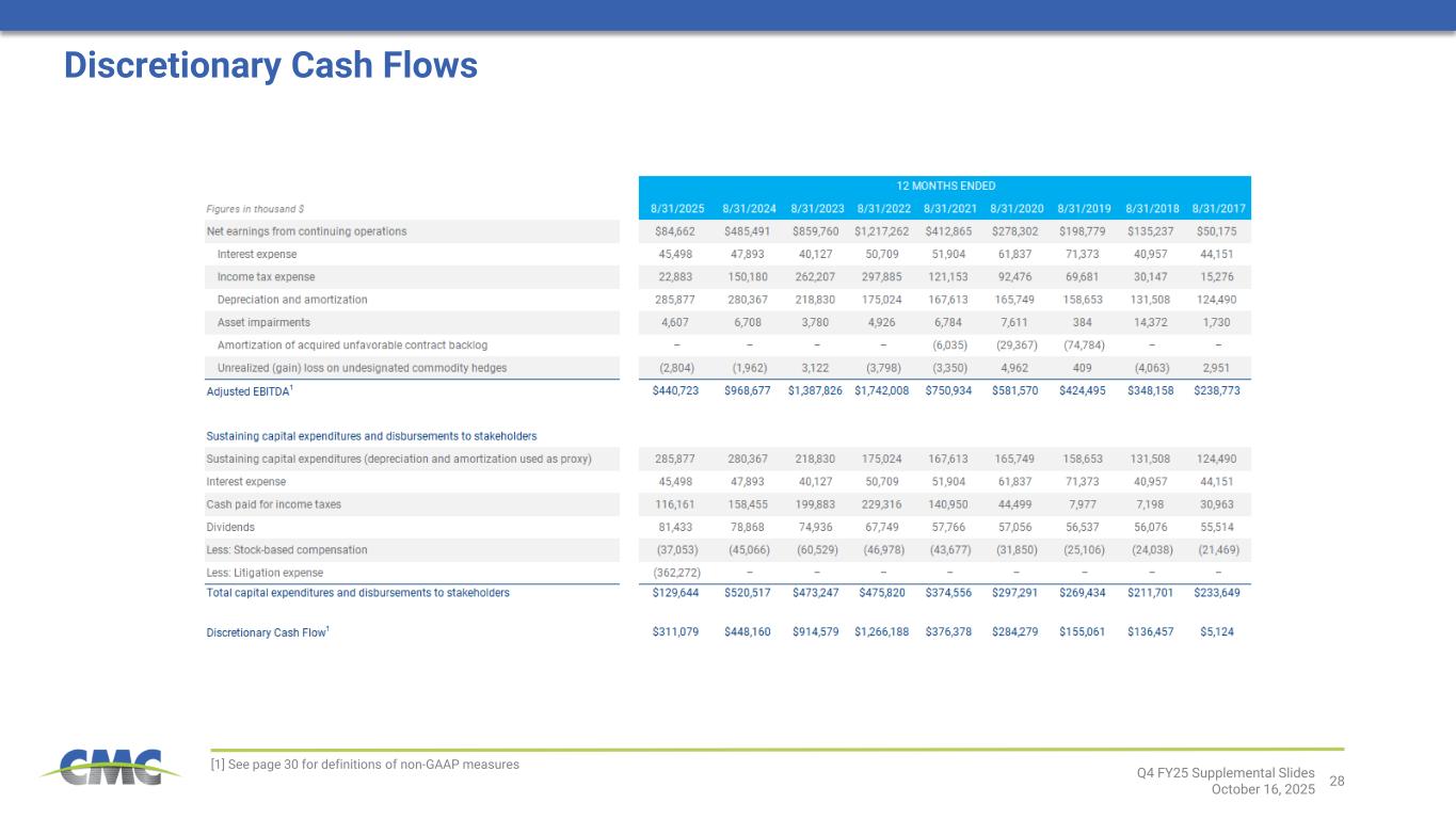 28 [1] See page 30 for definitions of non-GAAP measures Q4 FY25 Supplemental Slides October 16, 2025 Discretionary Cash Flows
