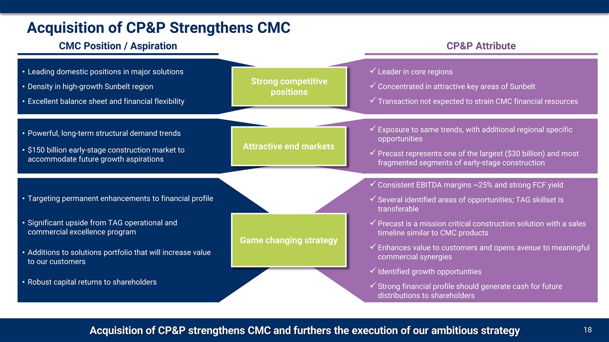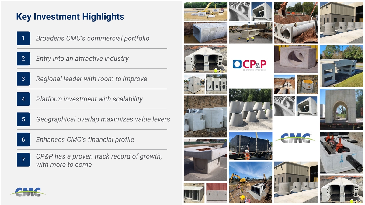 Key Investment Highlights 1 Broadens CMC’s commercial portfolio 2 Entry into an attractive industry 3 Regional leader with room to improve 4 Platform investment with scalability 5 Geographical overlap maximizes value levers 6 Enhances CMC’s financial profile CP&P has a proven track record of growth, 7 with more to come