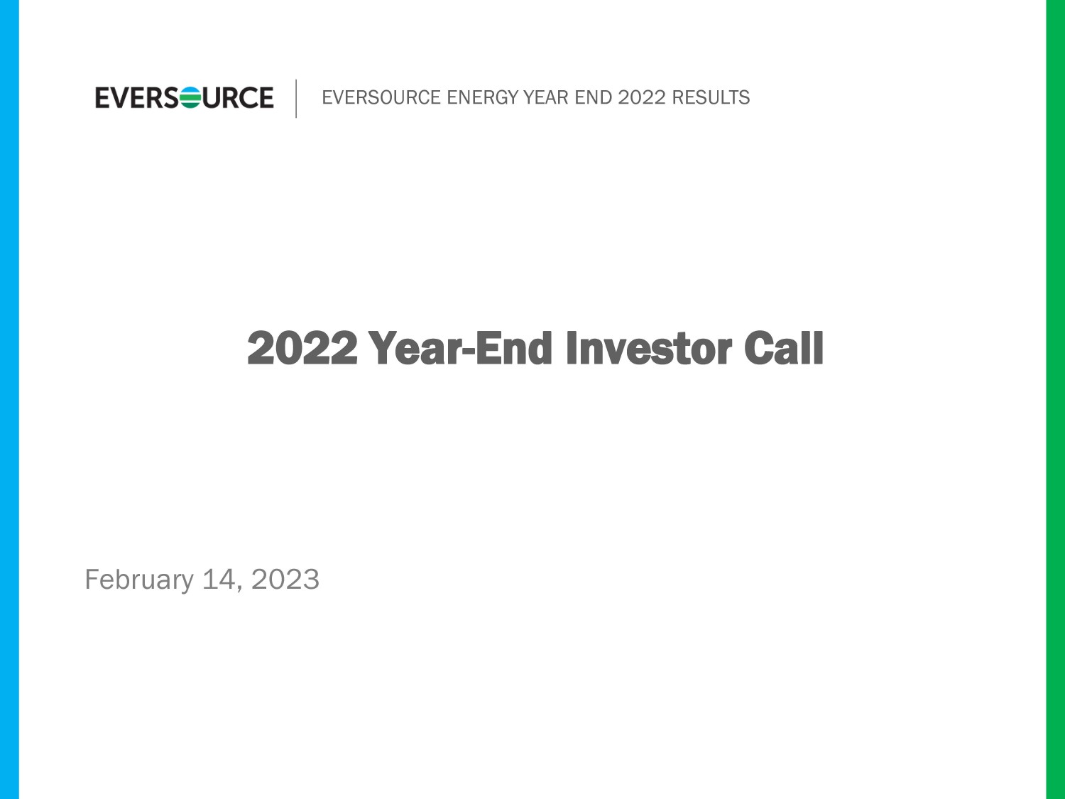 EVERSOURCE ENERGY YEAR END 2022 RESULTS February 14, 2023 2022 Year - End Investor Call