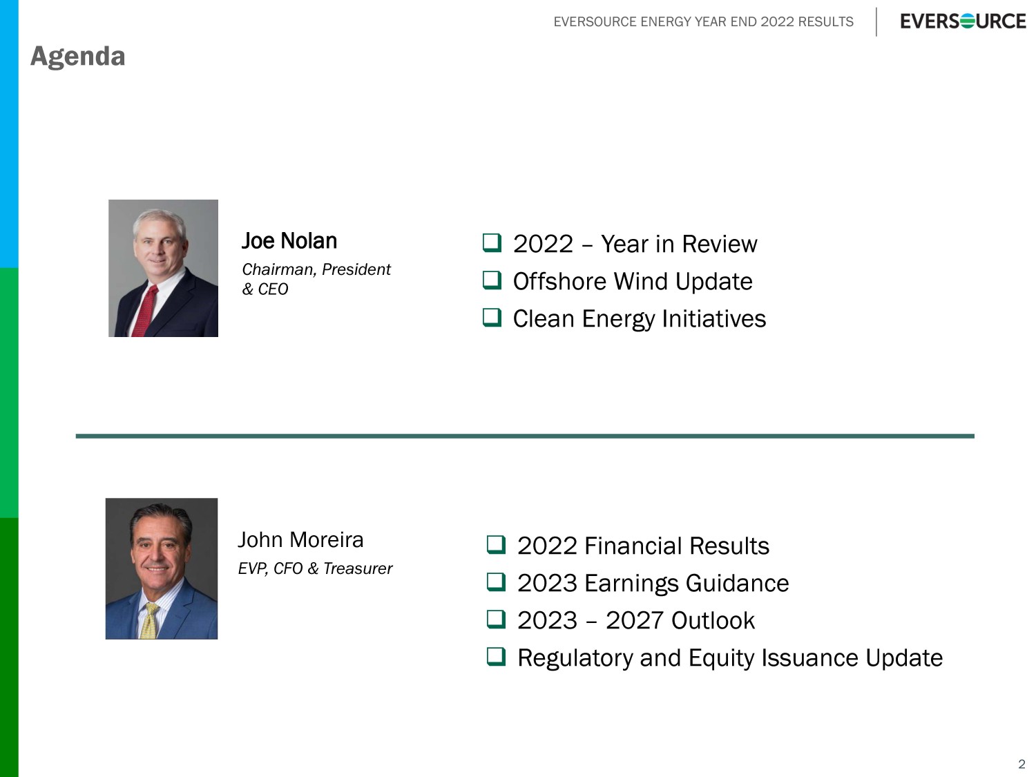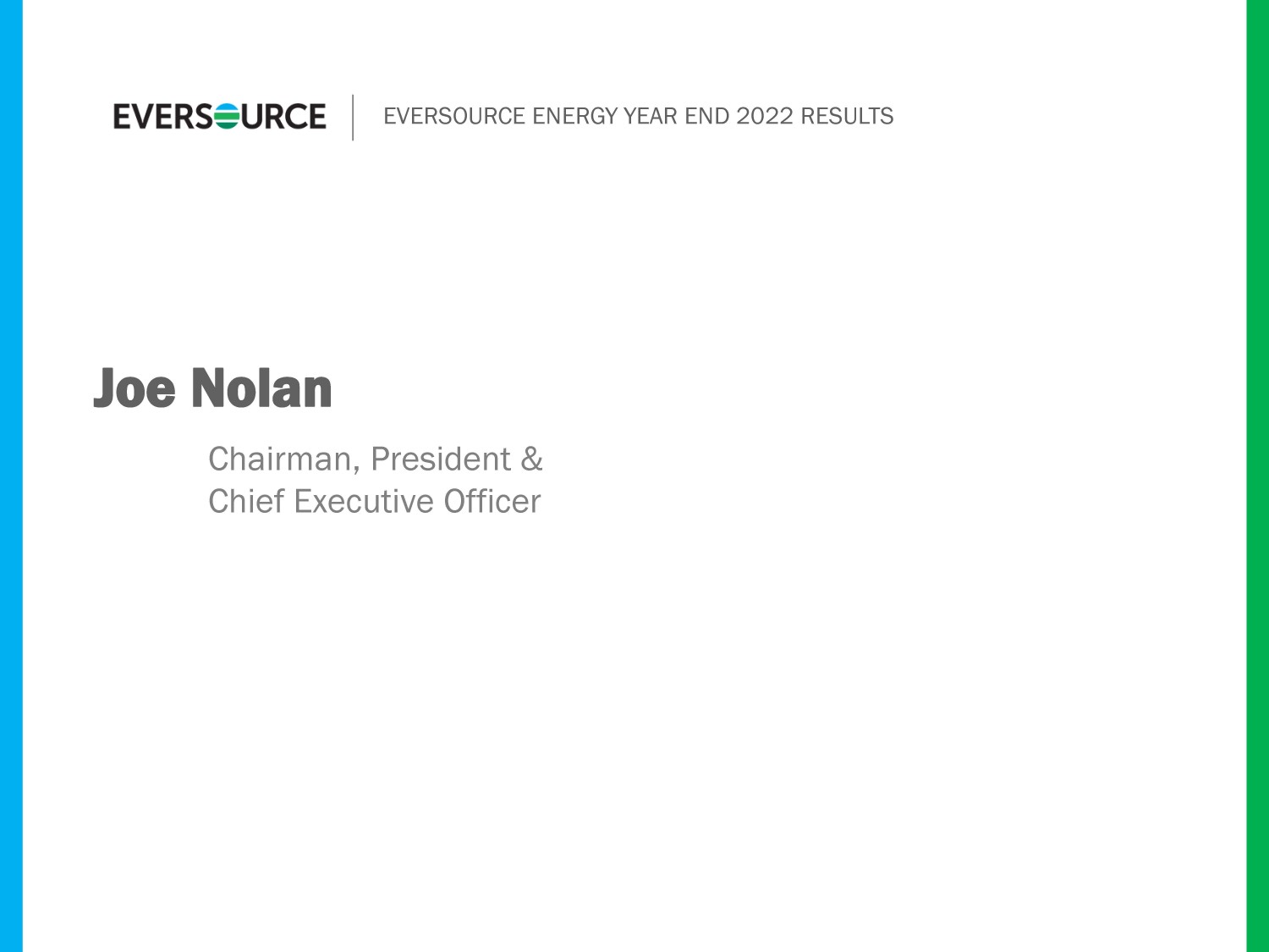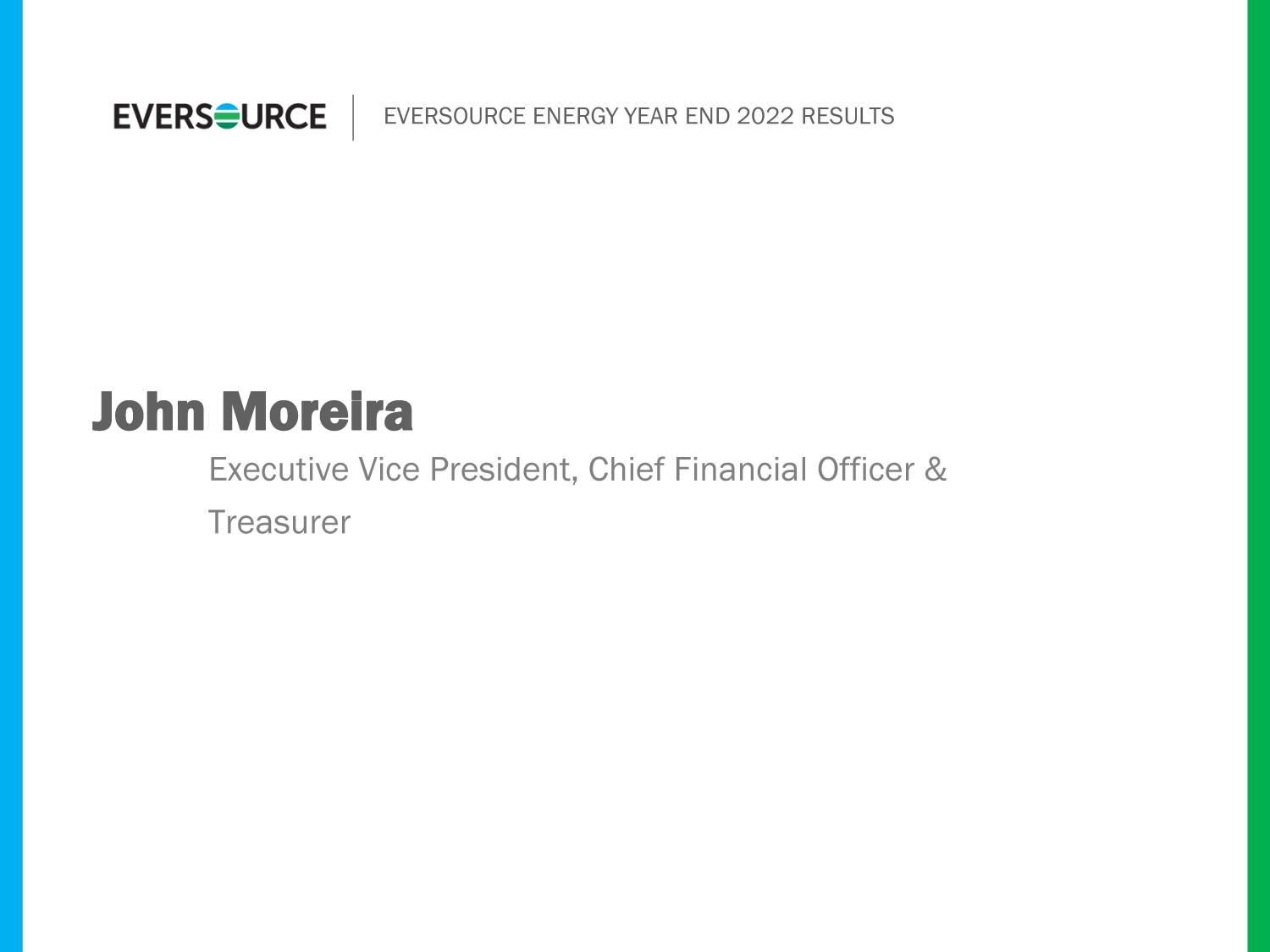 EVERSOURCE ENERGY YEAR END 2022 RESULTS Executive Vice President, Chief Financial Officer & Treasurer John Moreira
