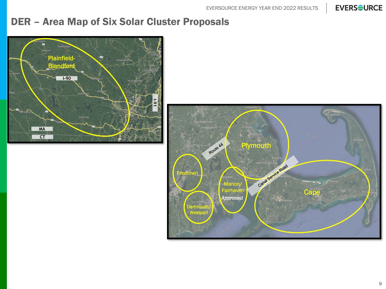 EVERSOURCE ENERGY YEAR END 2022 RESULTS DER – Area Map of Six Solar Cluster Proposals Plymouth Cape Marion/ Fairhaven Dartmouth/ Westport Freetown I - 90 CT MA Plainfield - Blandford I - 91 9 Approved