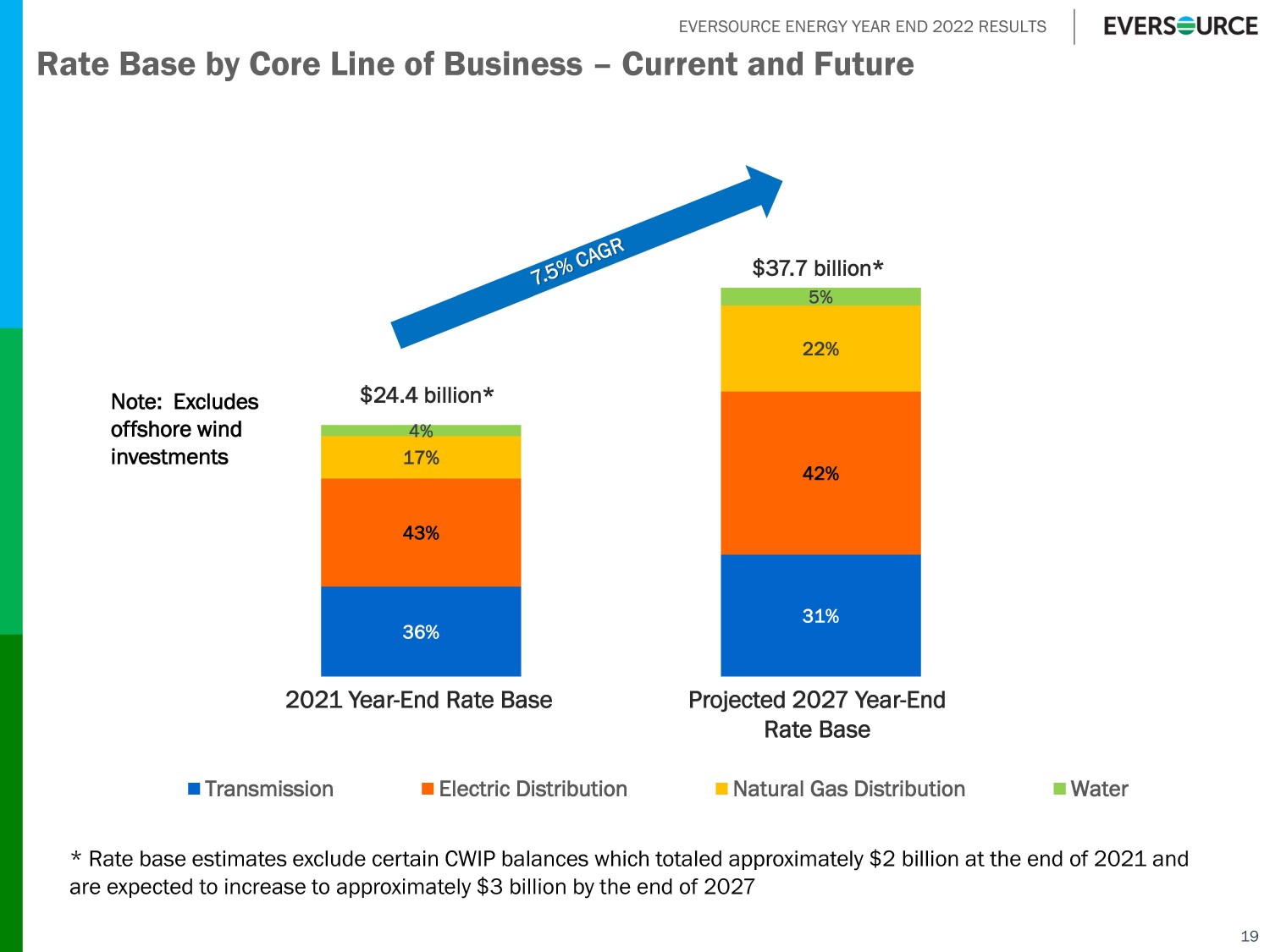 EVERSOURCE ENERGY YEAR END 2022 RESULTS Key Elements Inside and Outside Our New $21.5B Core Business Capital Investment Forecast Included in Forecast □ Execution of updated capital investment forecast □ Recently approved Distributed Energy Resource projects □ DPU - approved AMI in MA □ DPU - approved Grid Mod and EV programs in MA □ FERC - approved Park City Wind contract Not Included □ AMI in CT □ Electric storage investments in CT □ Significant onshore grid enhancements to enable offshore wind resources to reach load centers □ Amounts related to Commonwealth Wind offshore project □ Clean technology investments for natural gas alternatives 18