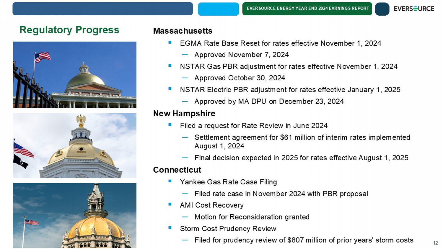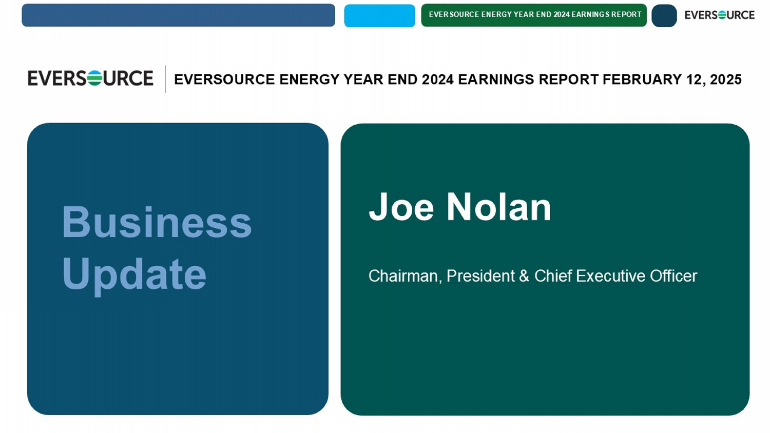 EVERSOURCE ENERGY YEAR END 2024 EARNINGS REPORT EVERSOURCE ENERGY YEAR END 2024 EARNINGS REPORT FEBRUARY 12, 2025 Chairman, President & Chief Executive Officer Joe Nolan Business Update