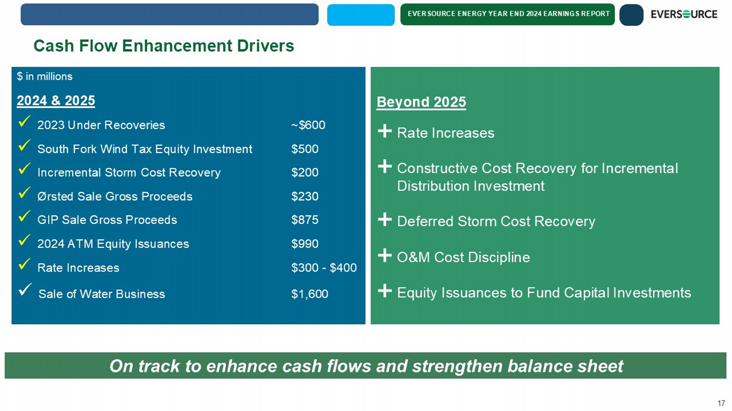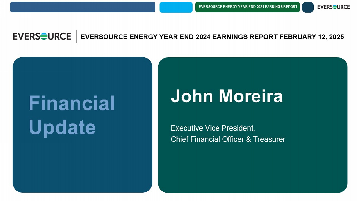 EVERSOURCE ENERGY YEAR END 2024 EARNINGS REPORT EVERSOURCE ENERGY YEAR END 2024 EARNINGS REPORT FEBRUARY 12, 2025 Executive Vice President, Chief Financial Officer & Treasurer John Moreira Financial Update