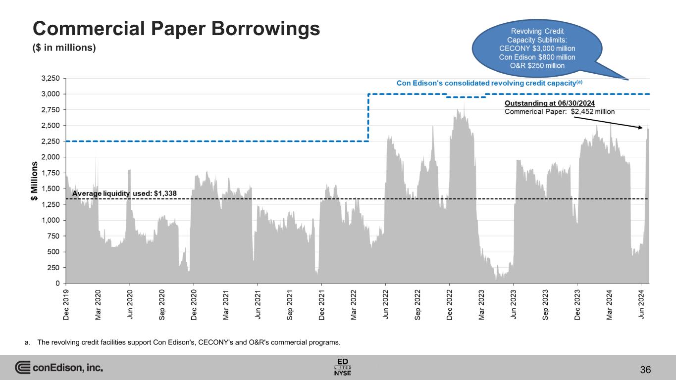 Commercial Paper Borrowings ($ in millions) a. The revolving credit facilities support Con Edison's, CECONY's and O&R's commercial programs. 36