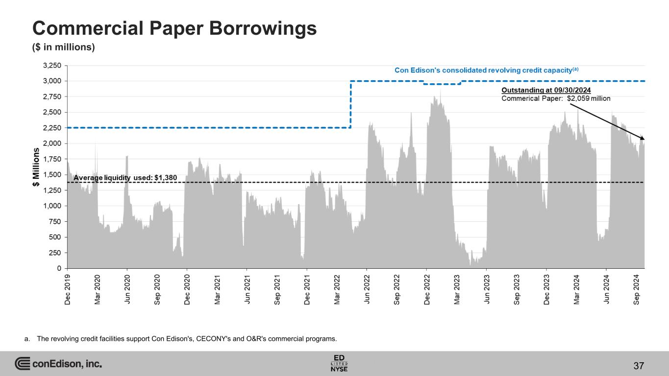 Commercial Paper Borrowings ($ in millions) a. The revolving credit facilities support Con Edison's, CECONY's and O&R's commercial programs. 37