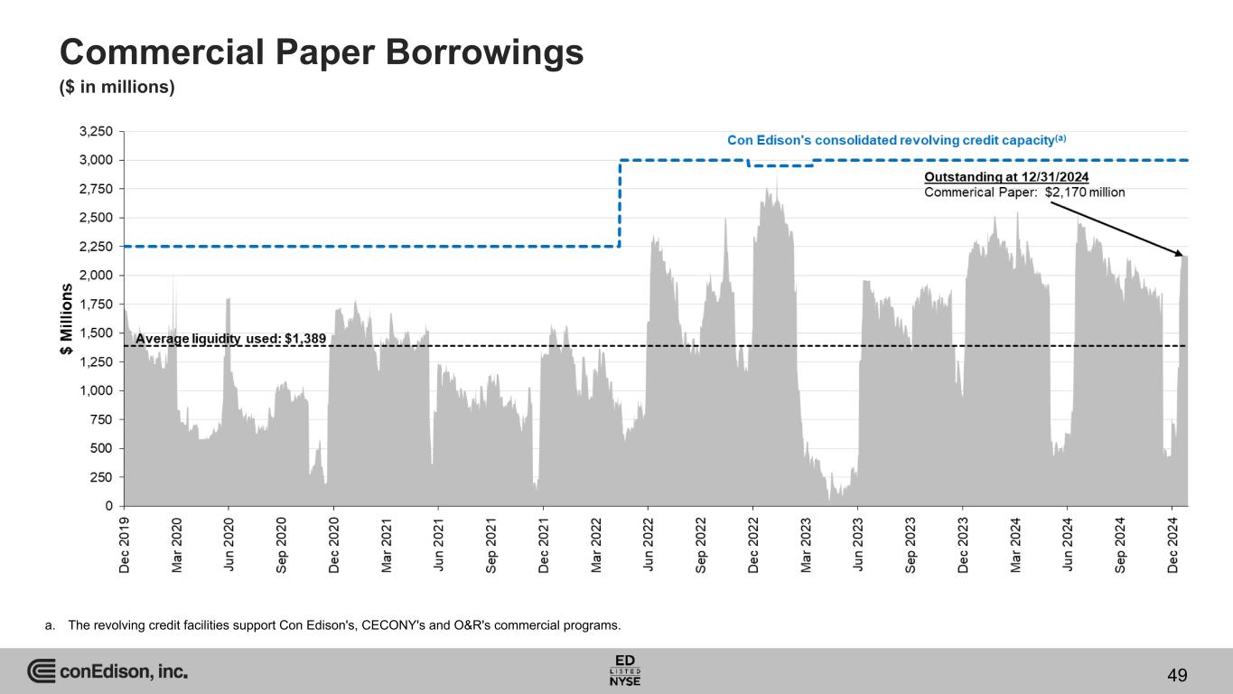 Commercial Paper Borrowings ($ in millions) a. The revolving credit facilities support Con Edison's, CECONY's and O&R's commercial programs. 49