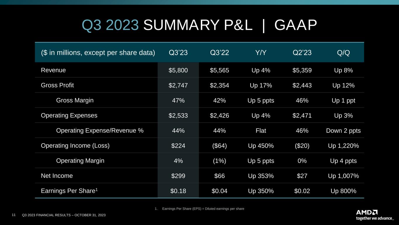AMD FINANCIAL RESULTS Third Quarter 2023 October 31, 2023