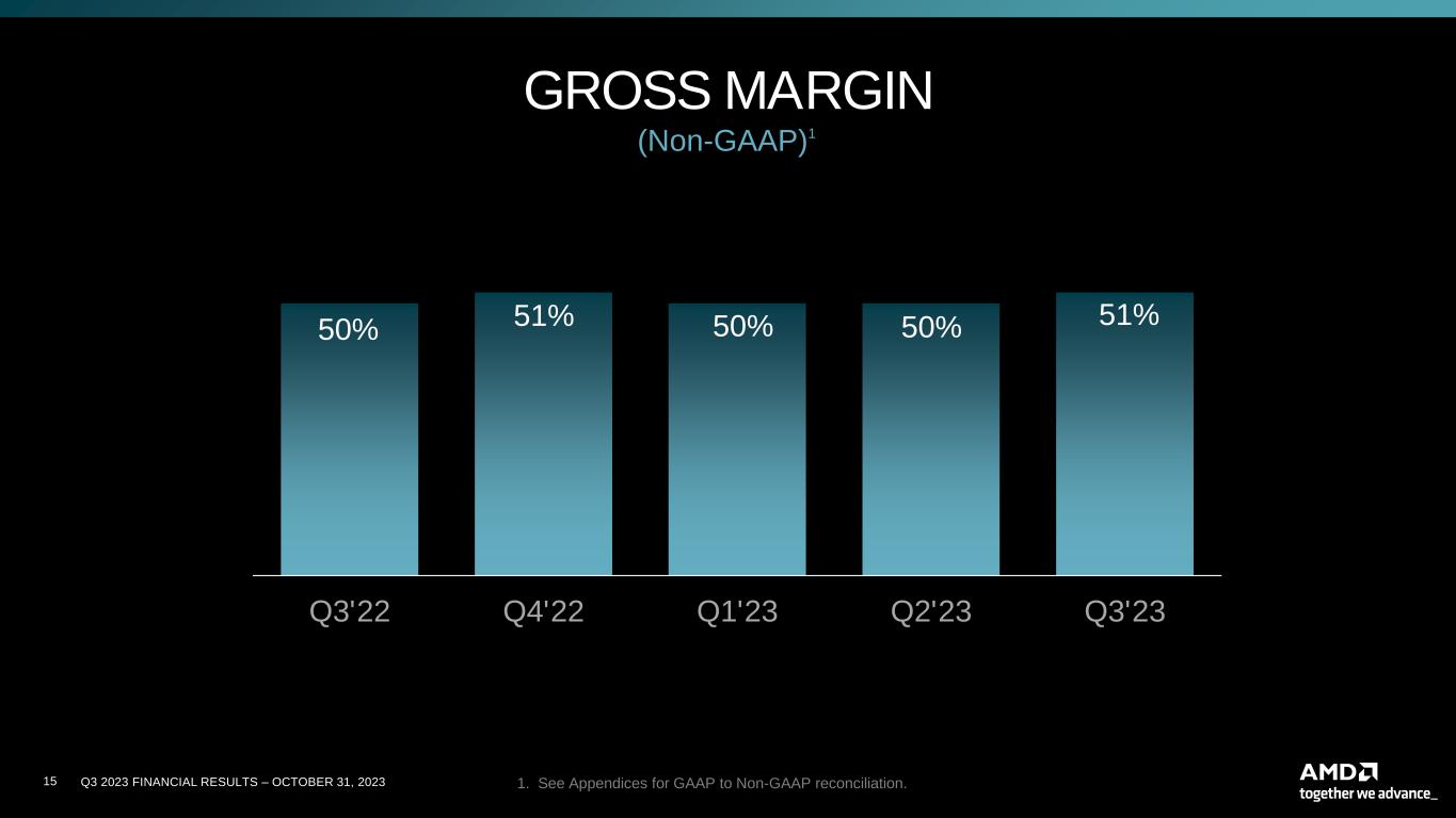 Q3 2023 FINANCIAL RESULTS – OCTOBER 31, 202314 42% 43% 44% 46% 47% Q3'22 Q4'22 Q1'23 Q2'23 Q3'23 GROSS MARGIN (GAAP)