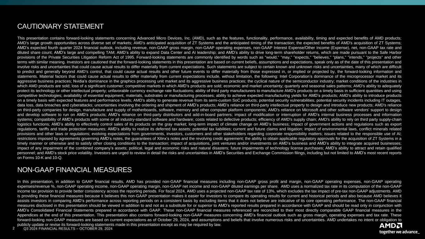 AMD FINANCIAL RESULTS Third Quarter 2024 October 29, 2024