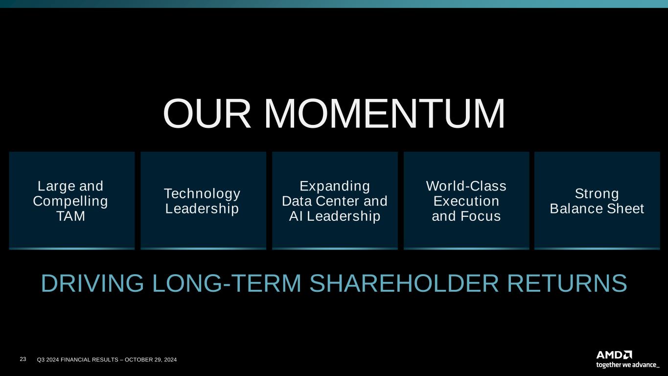 23 Q3 2024 FINANCIAL RESULTS – OCTOBER 29, 202423 Large and Compelling TAM World-Class Execution and Focus Technology Leadership Expanding Data Center and AI Leadership Strong Balance Sheet OUR MOMENTUM DRIVING LONG-TERM SHAREHOLDER RETURNS