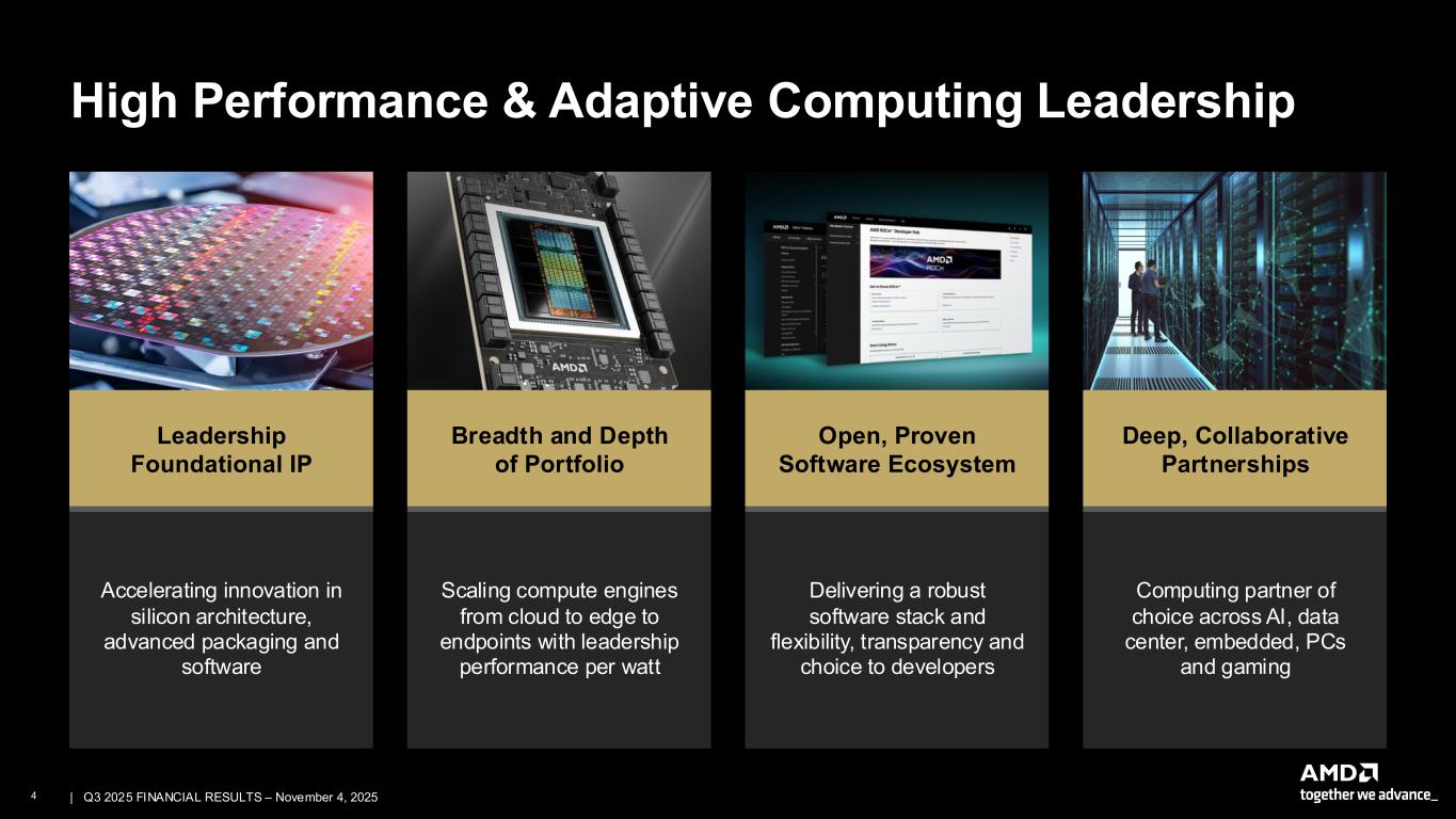 3 | | Q3 2025 FINANCIAL RESULTS – November 4, 2025 Our Journey Leadership Product Portfolio Expanding Customer & Partner Ecosystem Data Center and AI Growth Strong Financial Foundation