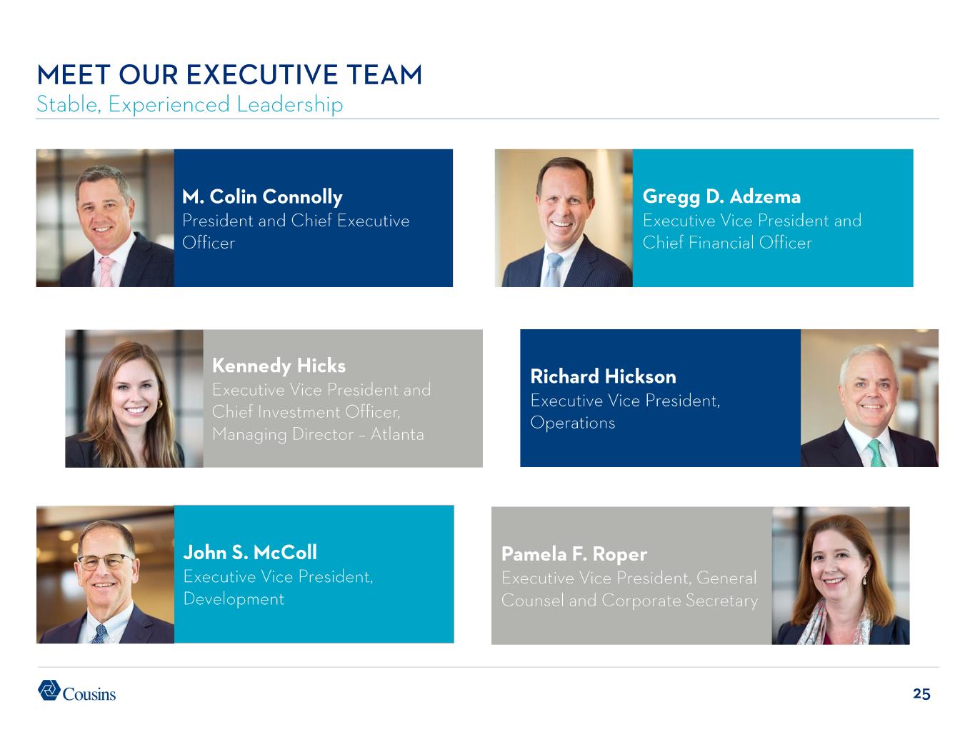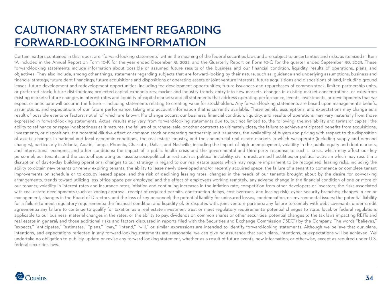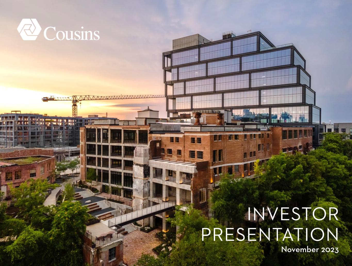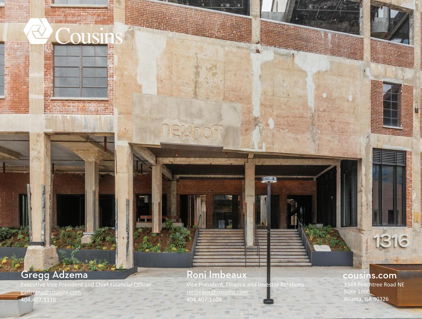3344 Peachtree Road NE Suite 1800 Atlanta, GA 30326 Executive Vice President and Chief Financial Officer gadzema@cousins.com 404.407.1116 Vice President, Finance and Investor Relations rimbeaux@cousins.com 404.407.1104