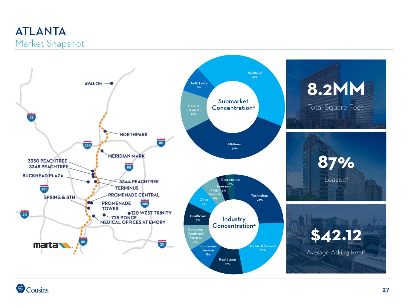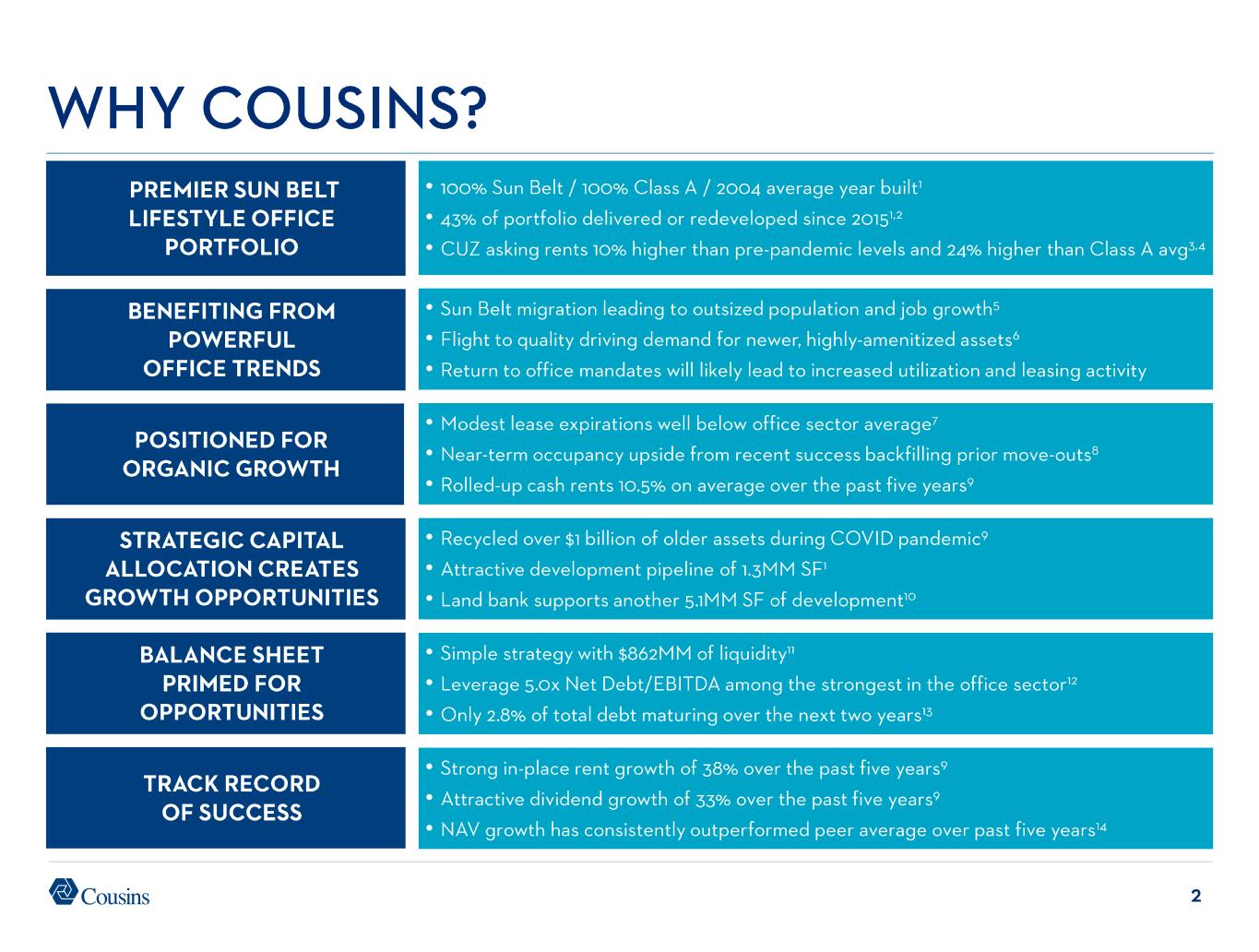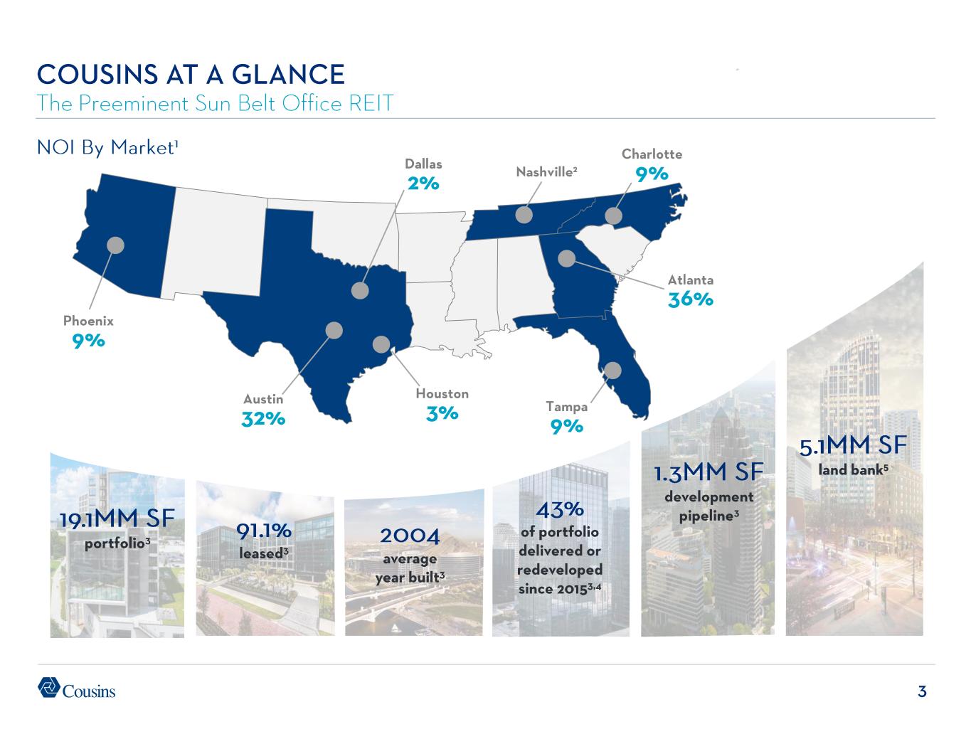 3344 Peachtree Road NE Suite 1800 Atlanta, GA 30326 Executive Vice President and Chief Financial Officer gadzema@cousins.com 404.407.1116 Vice President, Finance and Investor Relations rimbeaux@cousins.com 404.407.1104