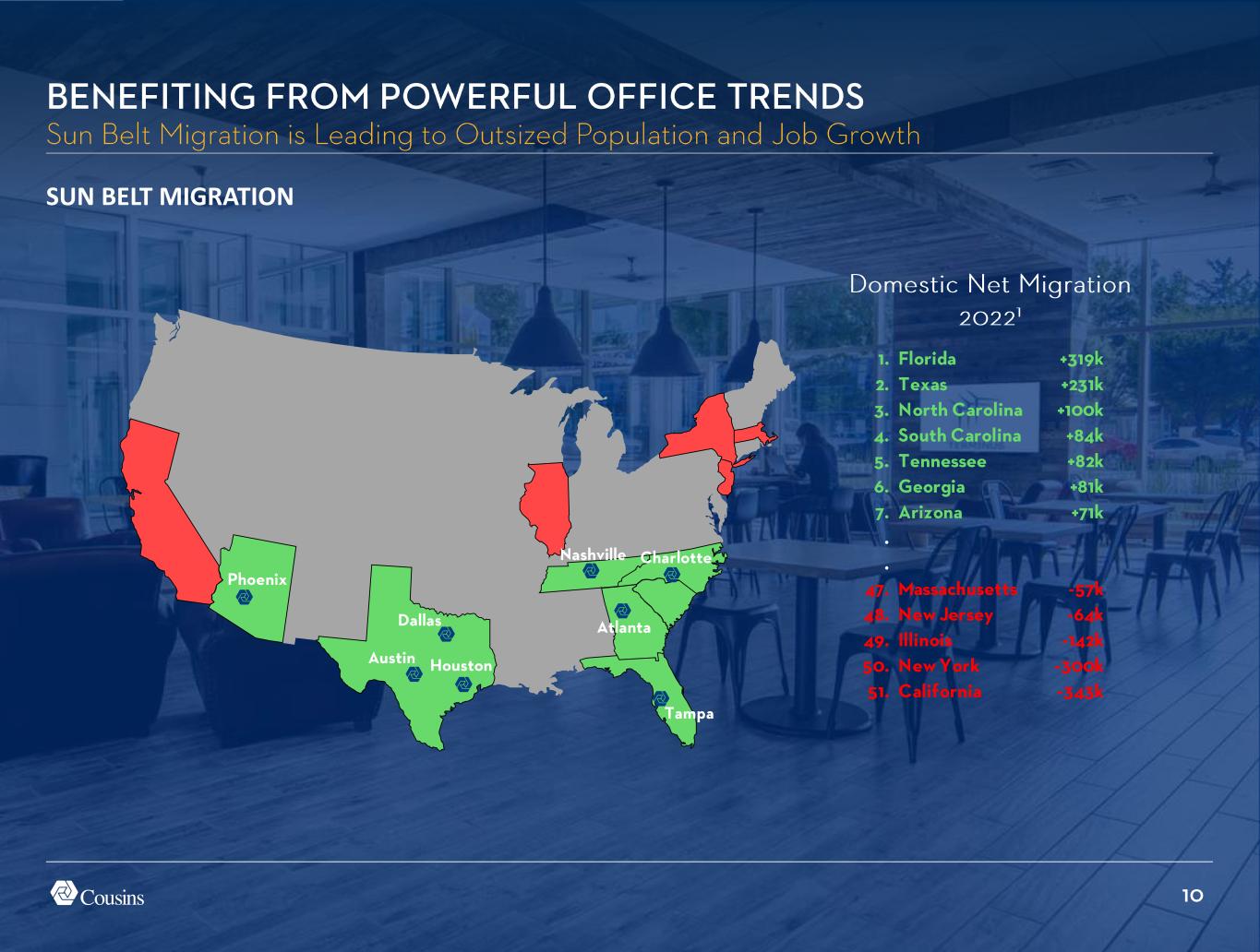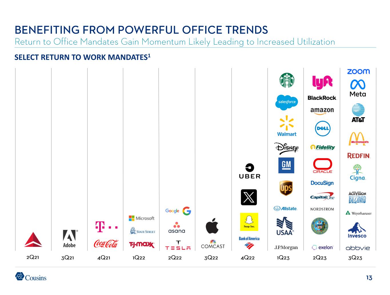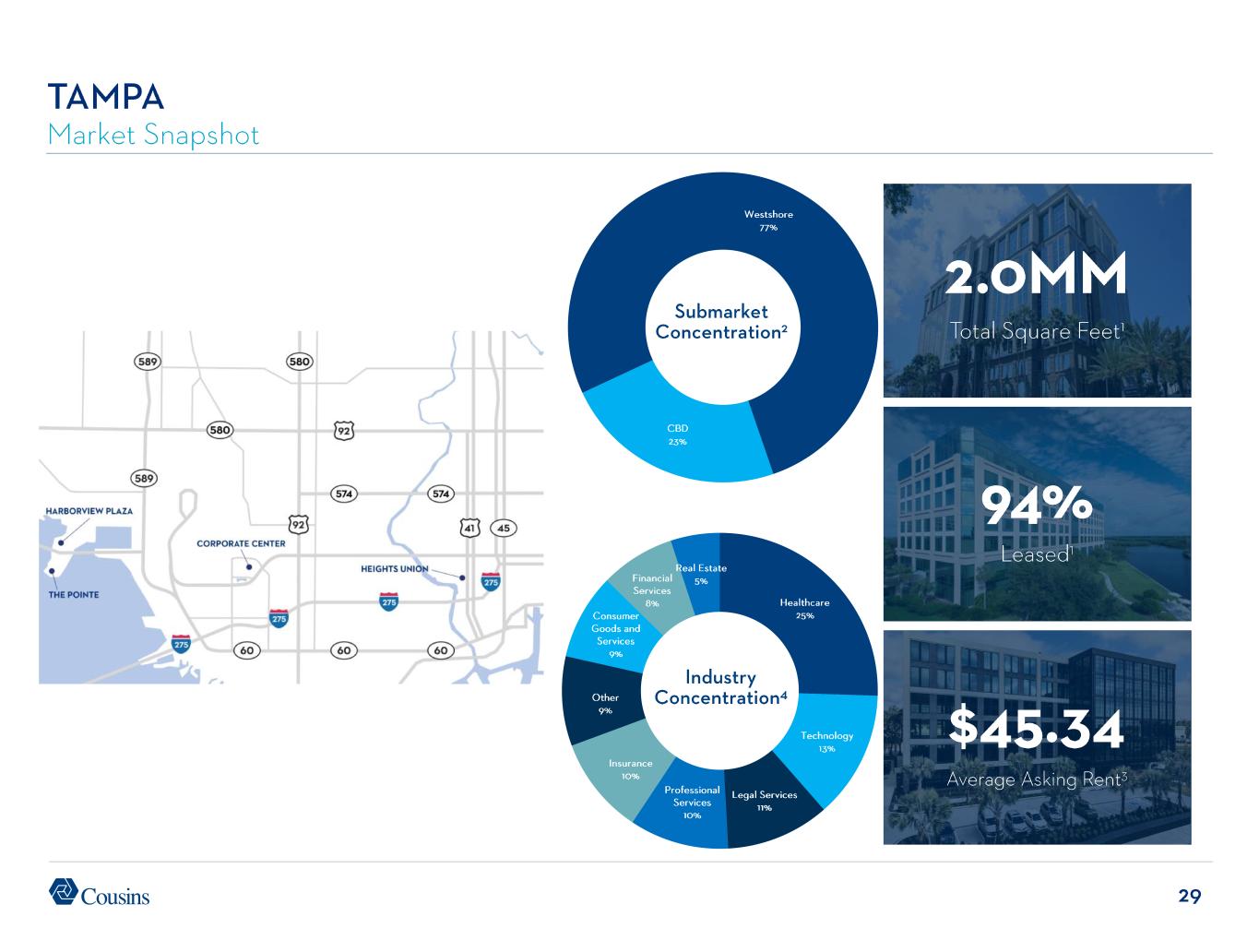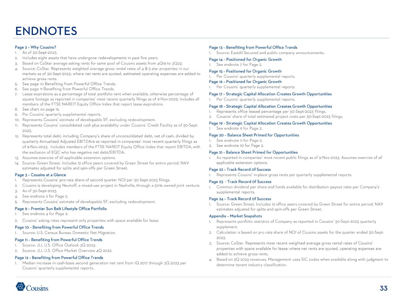 3344 Peachtree Road NE Suite 1800 Atlanta, GA 30326 Executive Vice President and Chief Financial Officer gadzema@cousins.com 404.407.1116 Vice President, Finance and Investor Relations rimbeaux@cousins.com 404.407.1104
