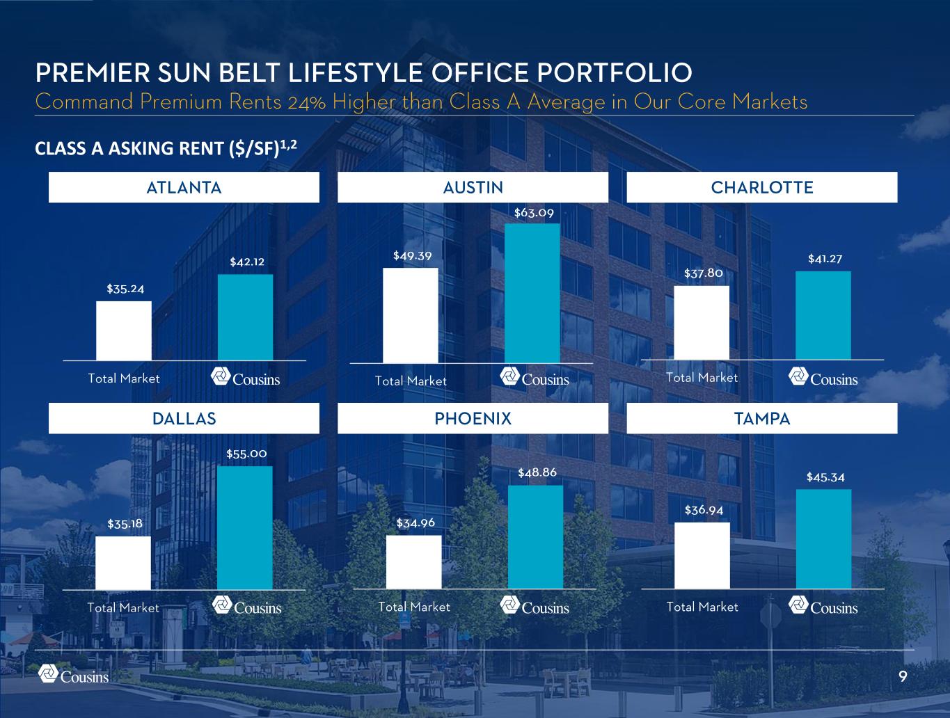 COUSINS’ IN-PLACE GROSS RENT PER SF1