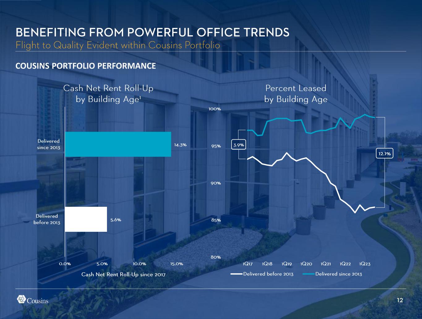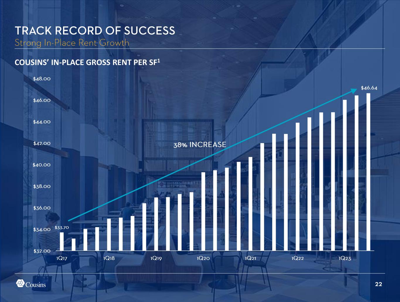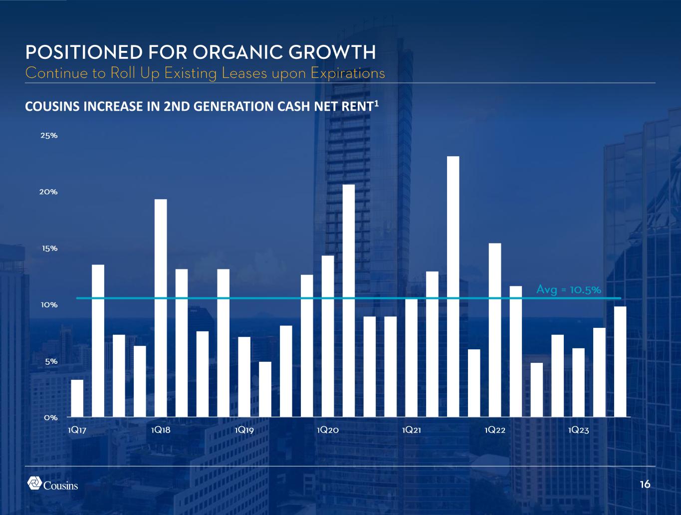 COUSINS INCREASE IN 2ND GENERATION CASH NET RENT1